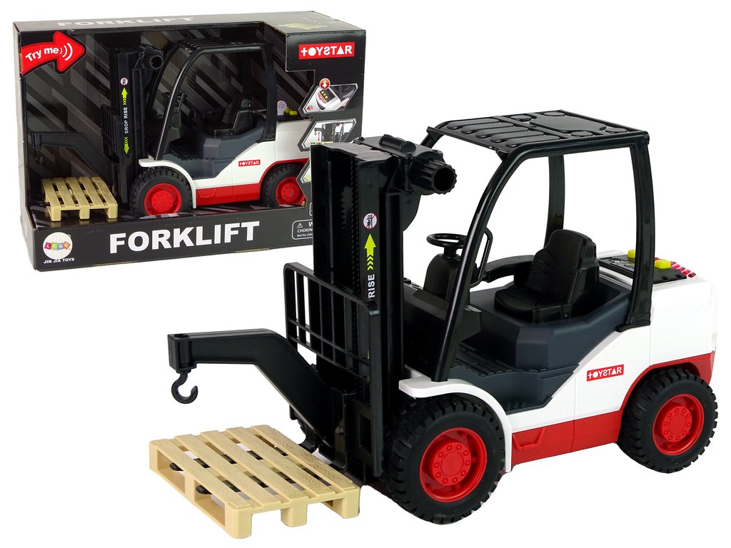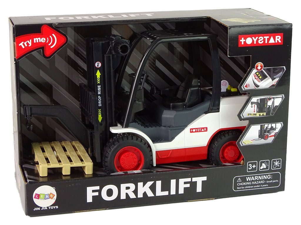 A targonca piros és fehér színben van. Egy gomb forgatásával emelhető/süllyeszthető villákkal rendelkezik. Ezen kívül három különböző hangja van, amely jellemző erre a járműre. Hangok jelennek meg, amikor megnyomjuk a sárga gombot. A gomb megnyomása felkapcsolja a gombok mellett található piros lámpát is. A jármű hátsó kerekei súrlódó hajtásúak , ami azt jelenti, hogy a játékautó egy bizonyos távolságot magától megtesz, anélkül, hogy lökdösőre lenne szüksége. Ezen kívül a targoncának van egy raklapja is, amely kivehető és feltehető.