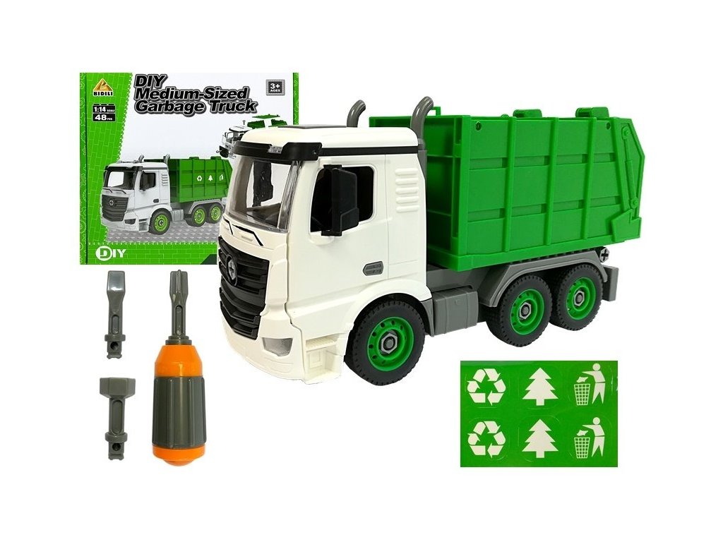 A játék szétszedésének és az egyes elemek hozzáférhetővé tételének lehetőségével ellátott szemeteskocsi lehetővé teszi a gyermek logikus gondolkodásának fejlesztését. A szemeteskocsi 6 kerékre van felszerelve , amelyek szabadon forognak, így sík felületeken is haladhat. A szemeteskocsi mozgatható fedelű tartállyal van felszerelve, amely könnyen megemelhető. A mobil utánfutó lehetőségének köszönhetően gyermeke megtöltheti kisebb játékokkal, majd máshová dobhatja. Az egész műanyagból készült, ami garantálja a játék hosszú élettartamát. Ezentúl a kisgyermek saját egyéni elképzelése szerint alakíthatja át a járművet.