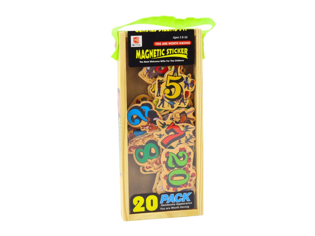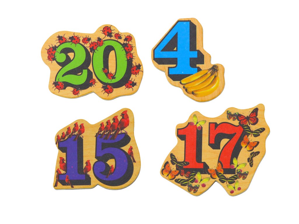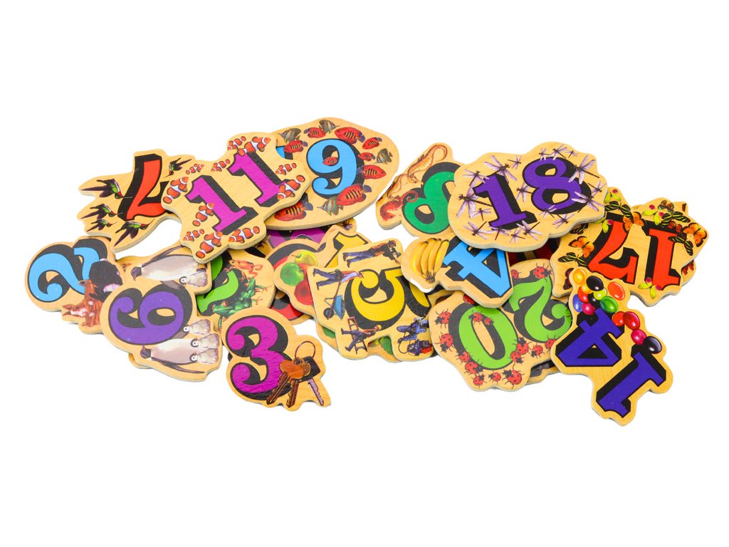 A fából készült mágneskészlet egy oktatójáték, amely 20 színes mágnest tartalmaz, amelyek mindegyike más-más számot és a megfelelő számú állatot, gyümölcsöt vagy tárgyat képvisel. A mágnesek kiváló minőségű fából készültek, ami garantálja játék közbeni tartósságukat és biztonságukat.