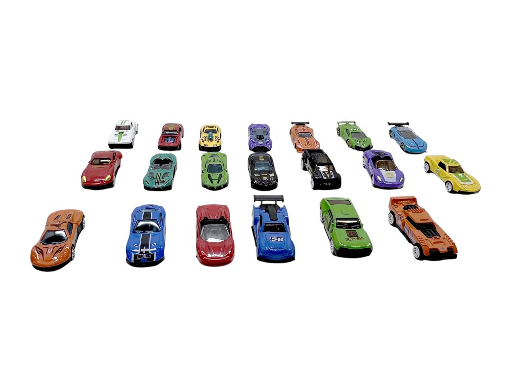A doboz egy nyitott versenypályává alakítható, vezetési pályával. A fém kisautók szabadon futó kerekekkel és sportos dizájnnal rendelkeznek. Ideális ajándéknak.