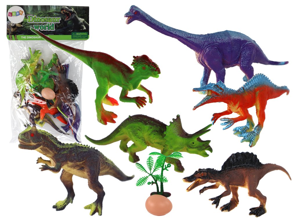 6 db dinoszaurusz figurát tartalmazó készlet + kiegészítők