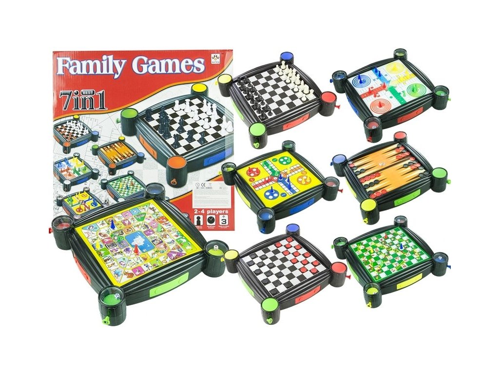 - Egy nagyszerű 7 az 1-ben társasjáték készlet, amelyet bárhová magaddal vihetsz.