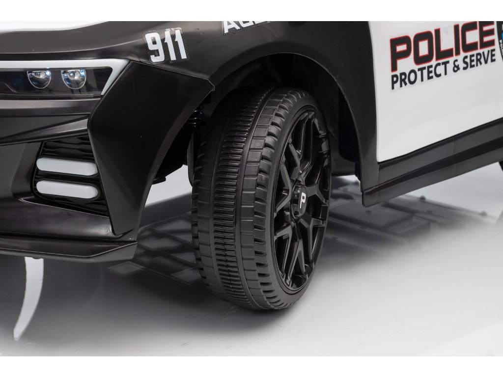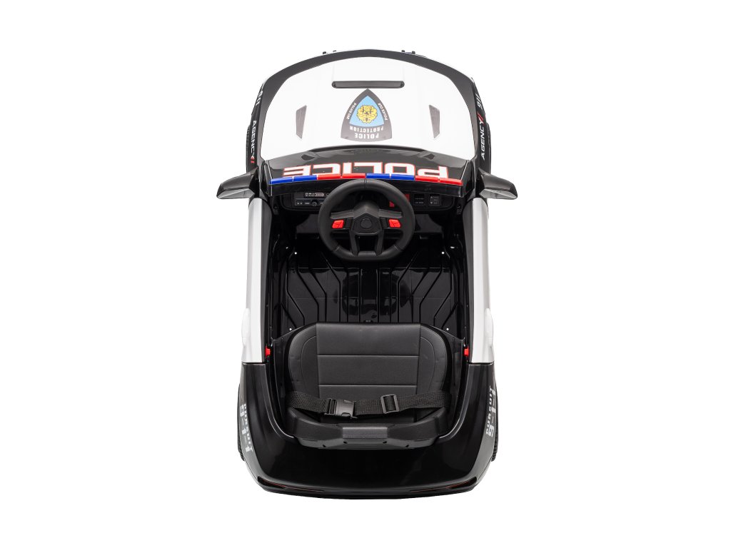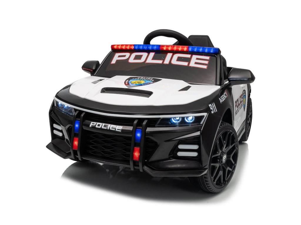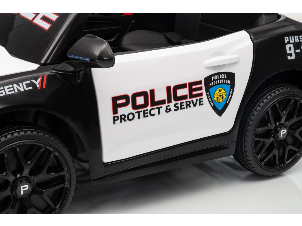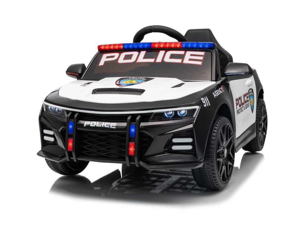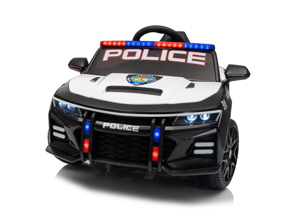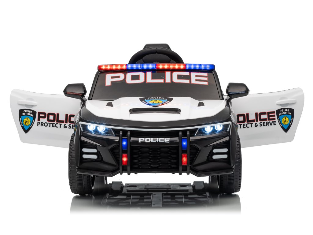 Az autó műbőrrel bevont üléssel, biztonsági övvel és nyitható ajtókkal van felszerelve. A LED lámpák elöl, a kék-piros rendőrségi jelzőfények és a valósághű hangok egy igazi bevetési jármű benyomását keltik. A Bluetooth, USB és MP3 csatlakozással ellátott multimédiás panelnek köszönhetően a kis sofőrök kedvenc zenéjüket hallgathatják vezetés közben.