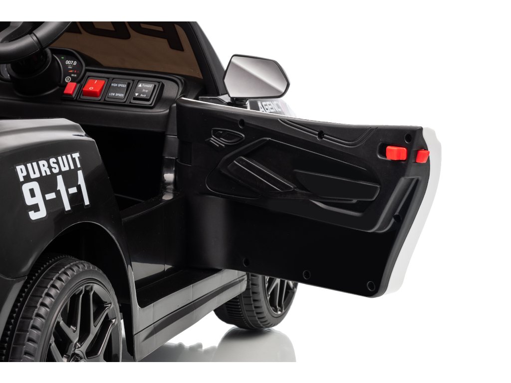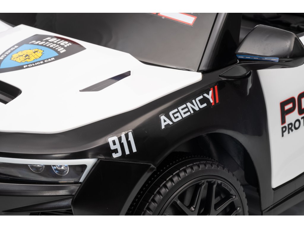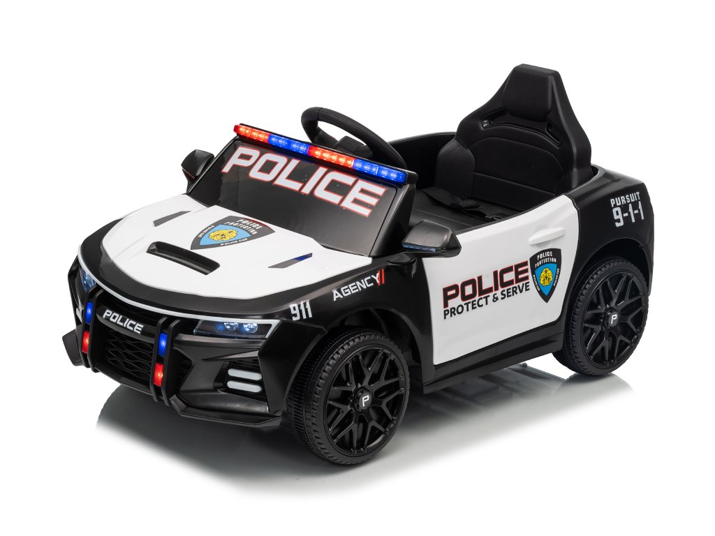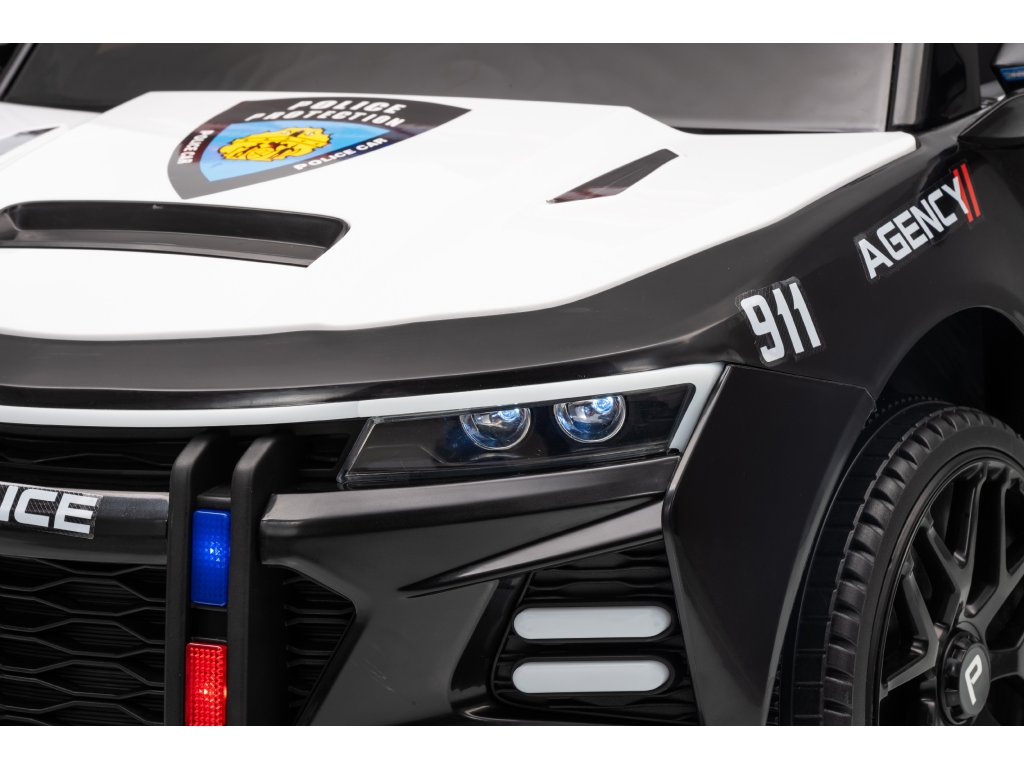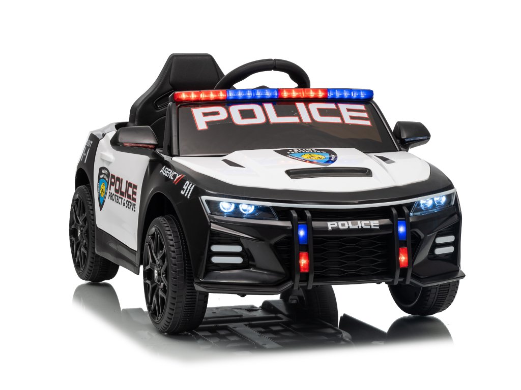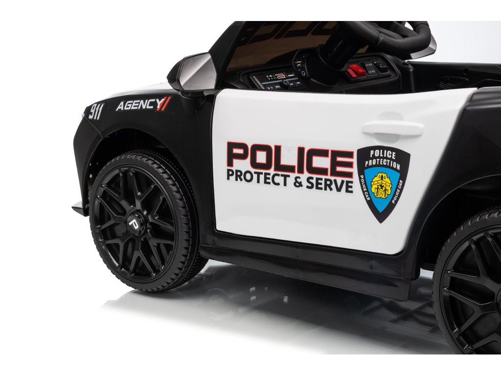 Az autó műbőrrel bevont üléssel, biztonsági övvel és nyitható ajtókkal van felszerelve. A LED lámpák elöl, a kék-piros rendőrségi jelzőfények és a valósághű hangok egy igazi bevetési jármű benyomását keltik. A Bluetooth, USB és MP3 csatlakozással ellátott multimédiás panelnek köszönhetően a kis sofőrök kedvenc zenéjüket hallgathatják vezetés közben.