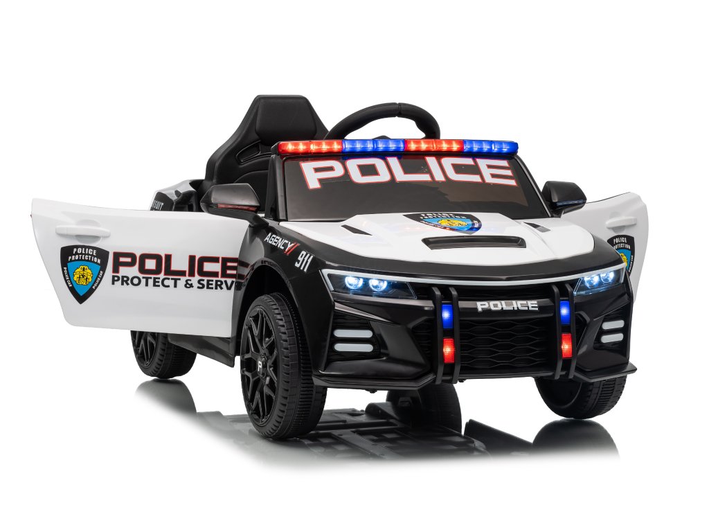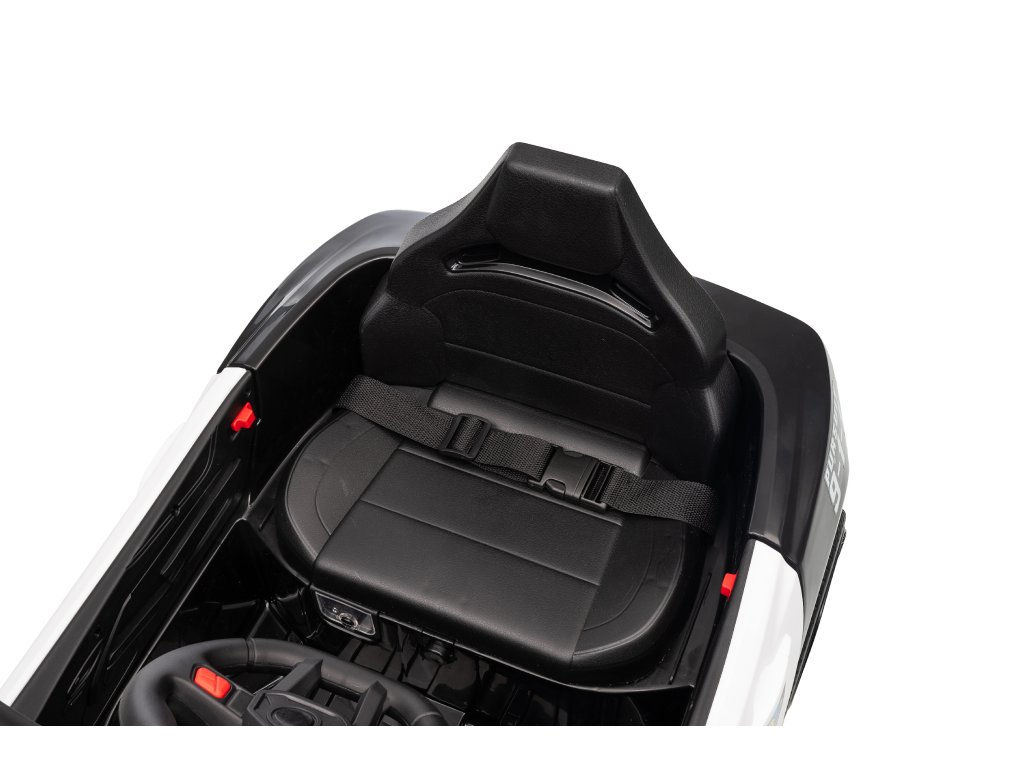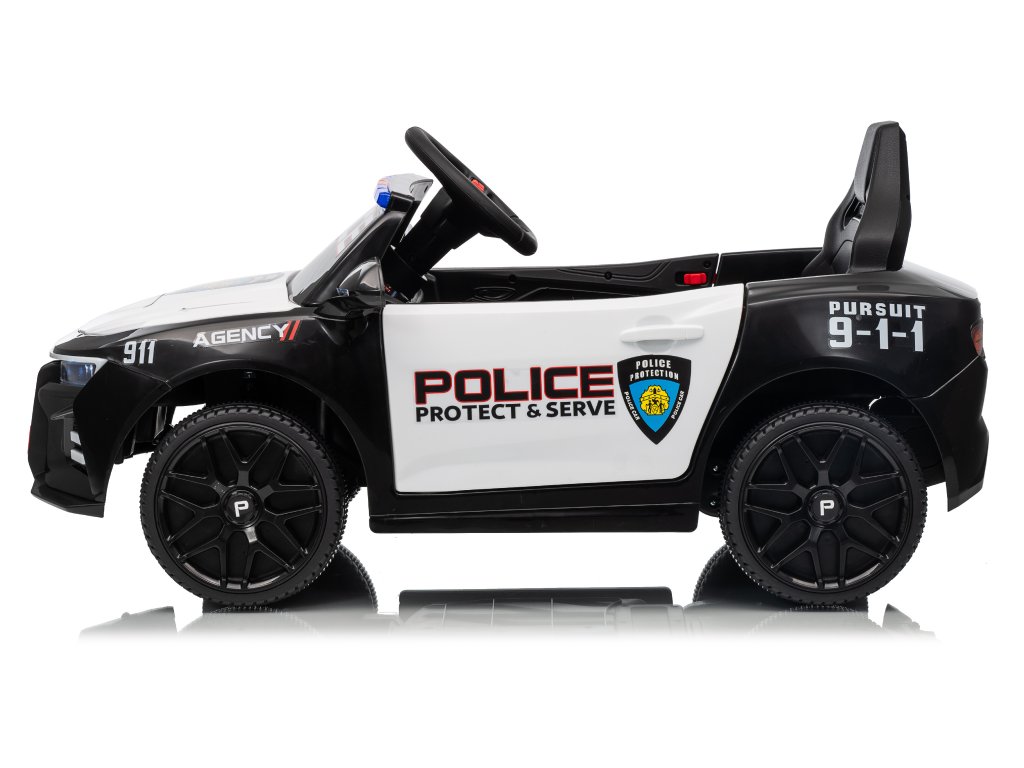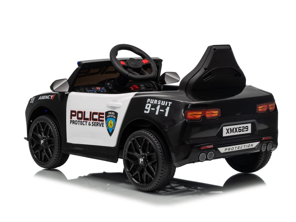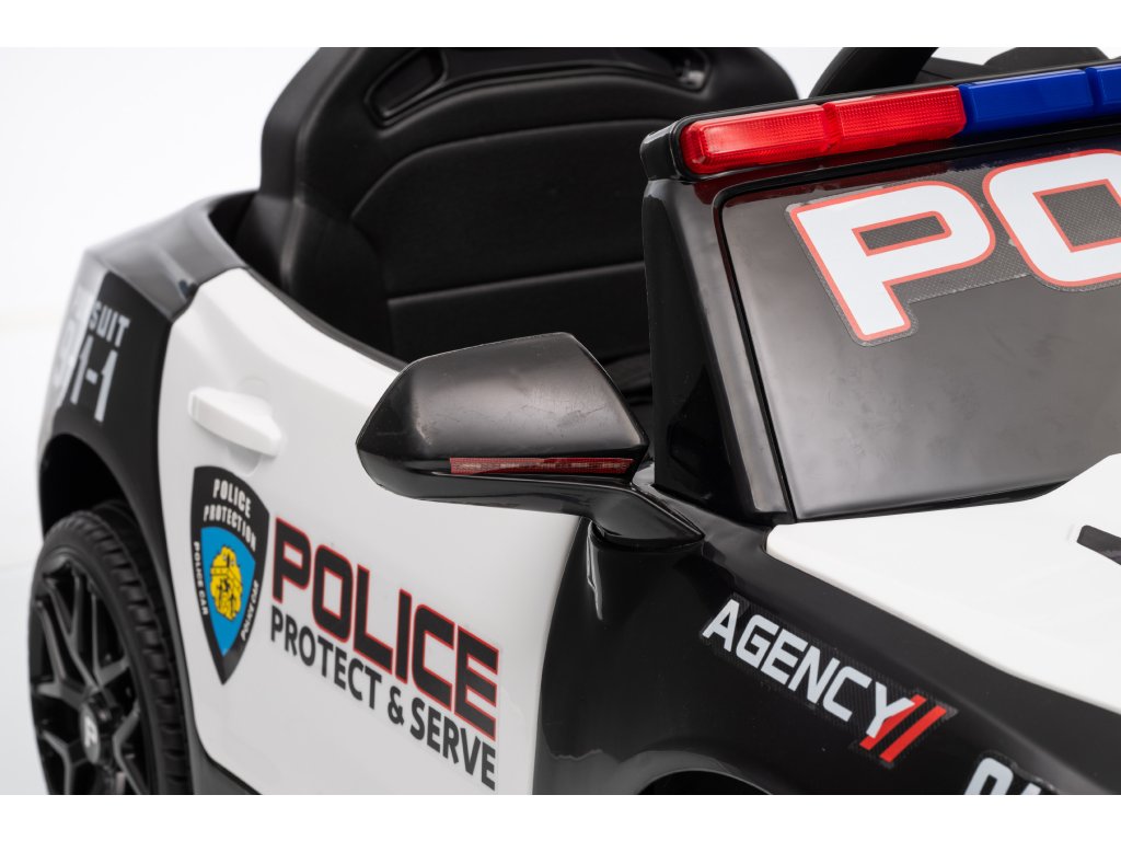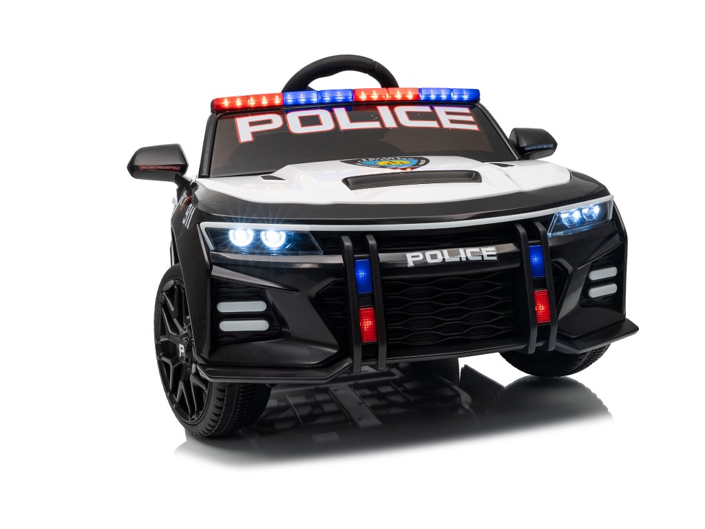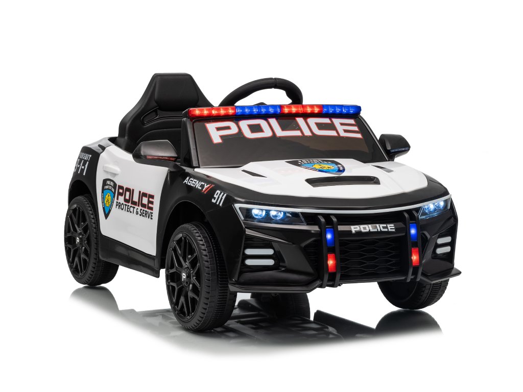 Az autó műbőrrel bevont üléssel, biztonsági övvel és nyitható ajtókkal van felszerelve. A LED lámpák elöl, a kék-piros rendőrségi jelzőfények és a valósághű hangok egy igazi bevetési jármű benyomását keltik. A Bluetooth, USB és MP3 csatlakozással ellátott multimédiás panelnek köszönhetően a kis sofőrök kedvenc zenéjüket hallgathatják vezetés közben.