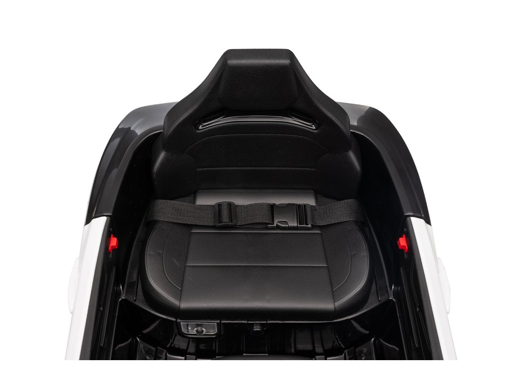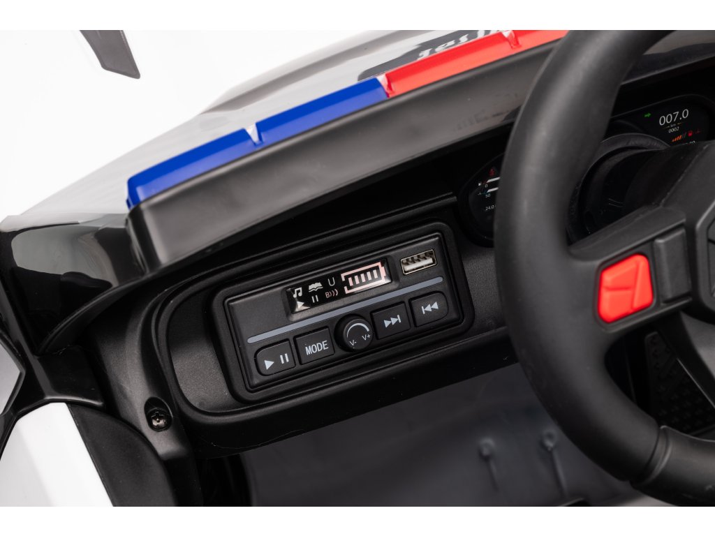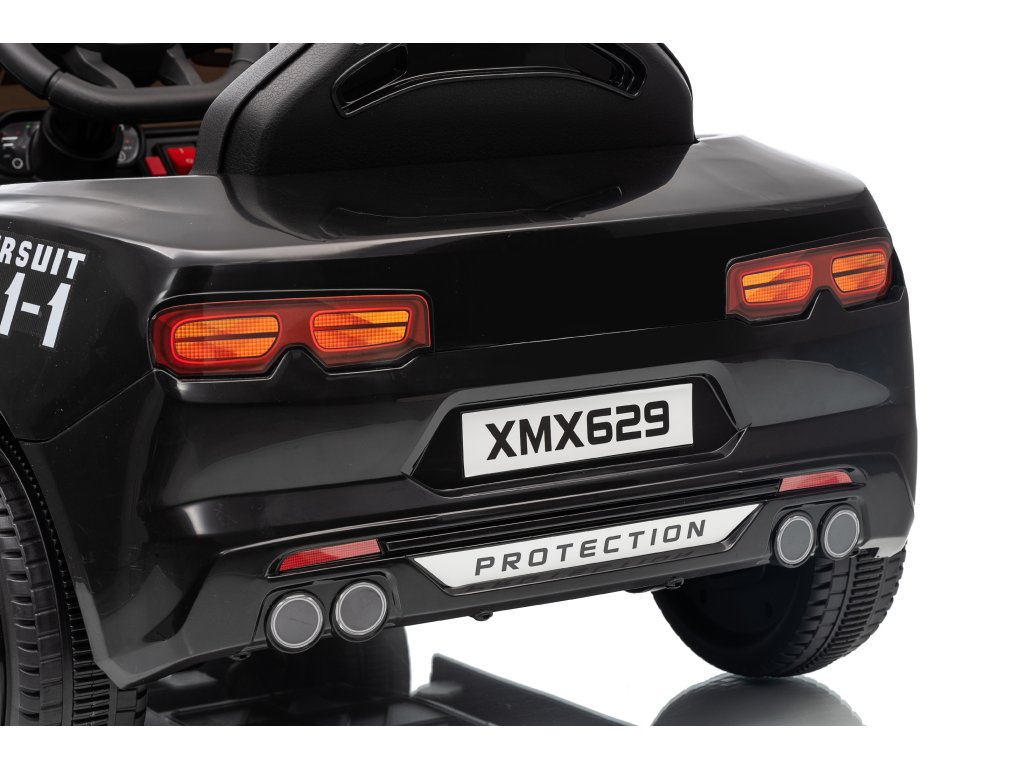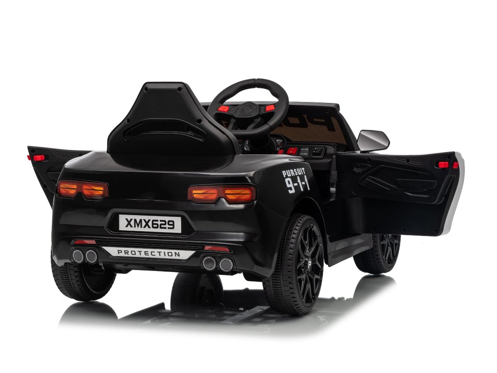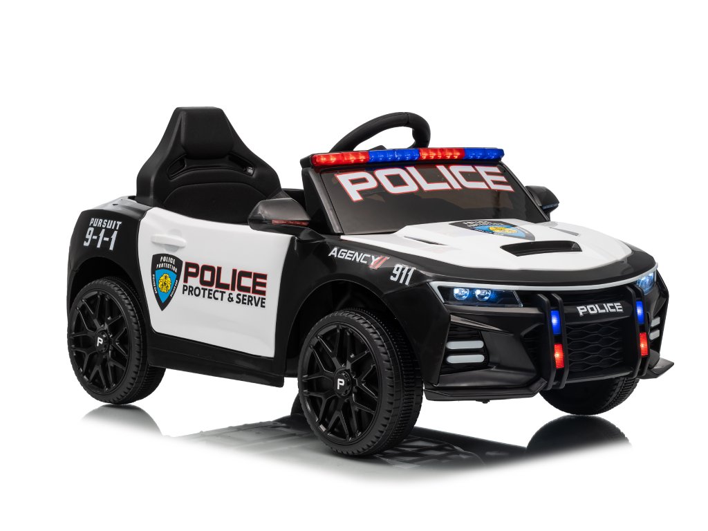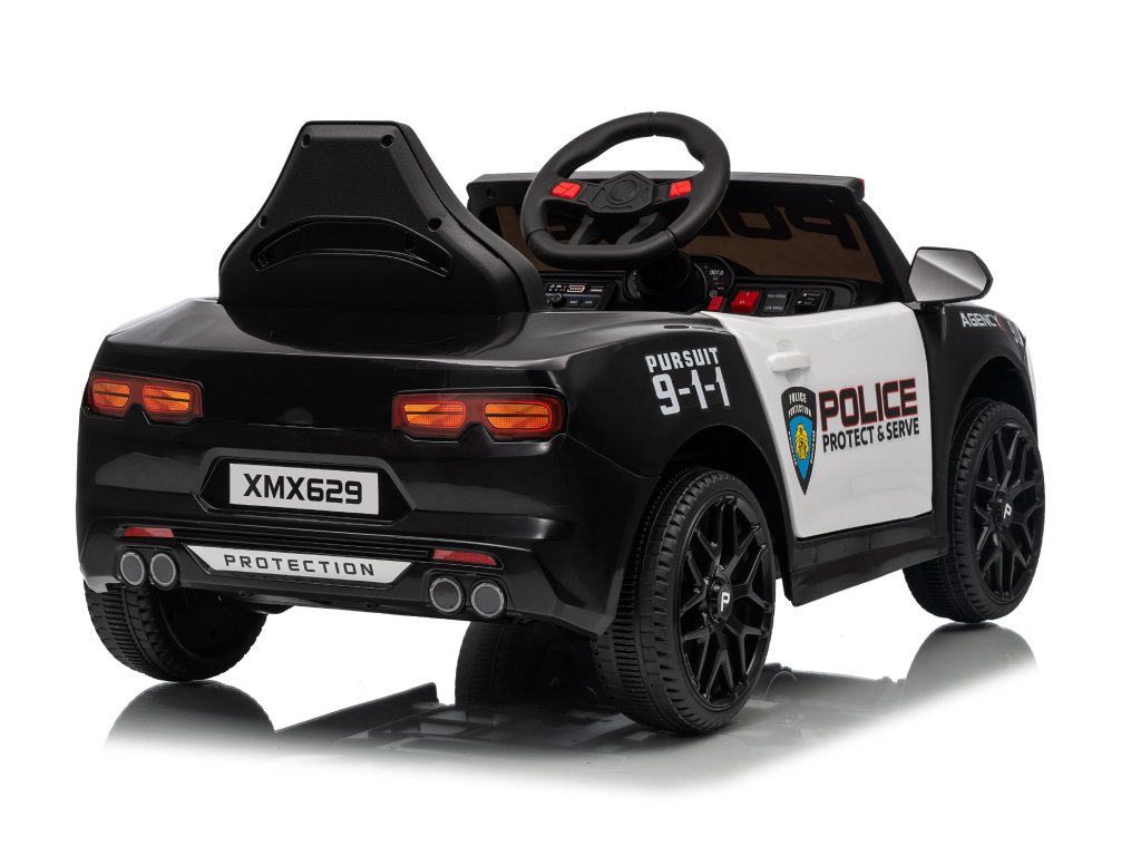 Az autó műbőrrel bevont üléssel, biztonsági övvel és nyitható ajtókkal van felszerelve. A LED lámpák elöl, a kék-piros rendőrségi jelzőfények és a valósághű hangok egy igazi bevetési jármű benyomását keltik. A Bluetooth, USB és MP3 csatlakozással ellátott multimédiás panelnek köszönhetően a kis sofőrök kedvenc zenéjüket hallgathatják vezetés közben.