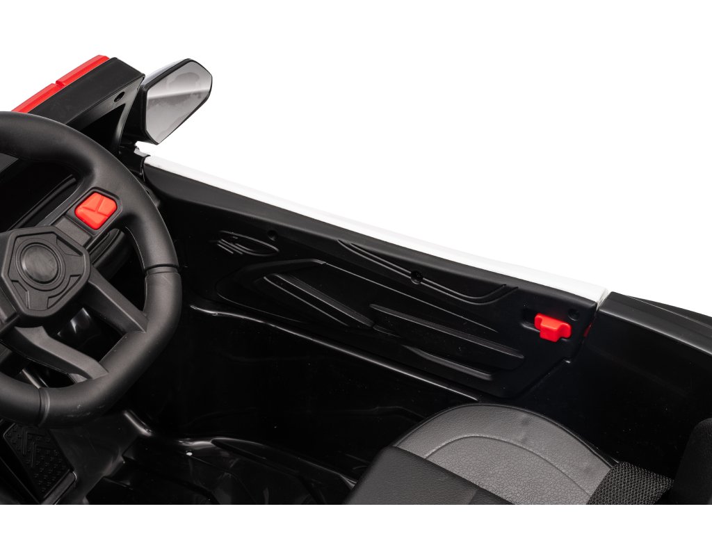 A 911 Agency elektromos gyermekautó ideális választás a kis rendőrök és a kalandok szerelmesei számára. Ez a modell autentikus vezetési élményt nyújt a négy 45 W-os motornak, a 12 V-os 7 Ah-s akkumulátornak és a vonzó rendőrségi dizájnnak köszönhetően, fény- és hangeffektekkel. A puha EVA kerekek és mindkét tengely felfüggesztése kényelmes utazást biztosít még egyenetlen felületen is, míg a „soft start” funkció lehetővé teszi a zökkenőmentes indulást rángatás nélkül.