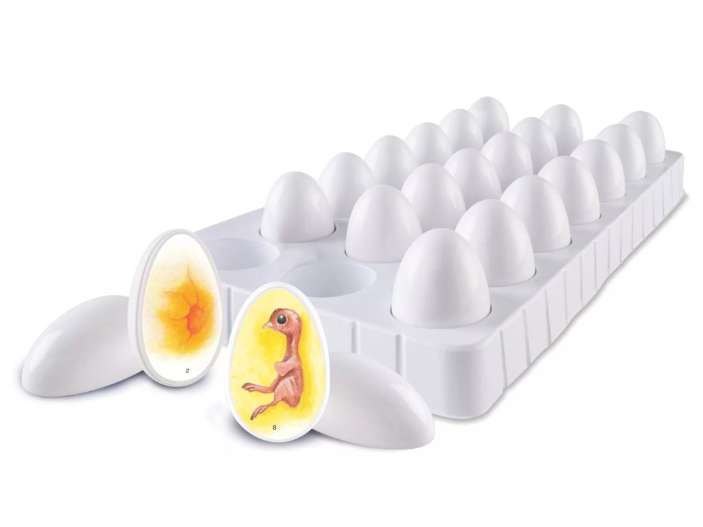 A készlet szimulálja a kelést, és megkönnyíti a csirkék fejlődésének egyes szakaszainak megértését. Alkalmas iskolai és otthoni tevékenységekhez, ahol támogatja a felfedezést és a szemléltető tanulást.