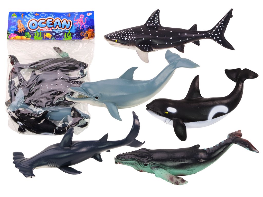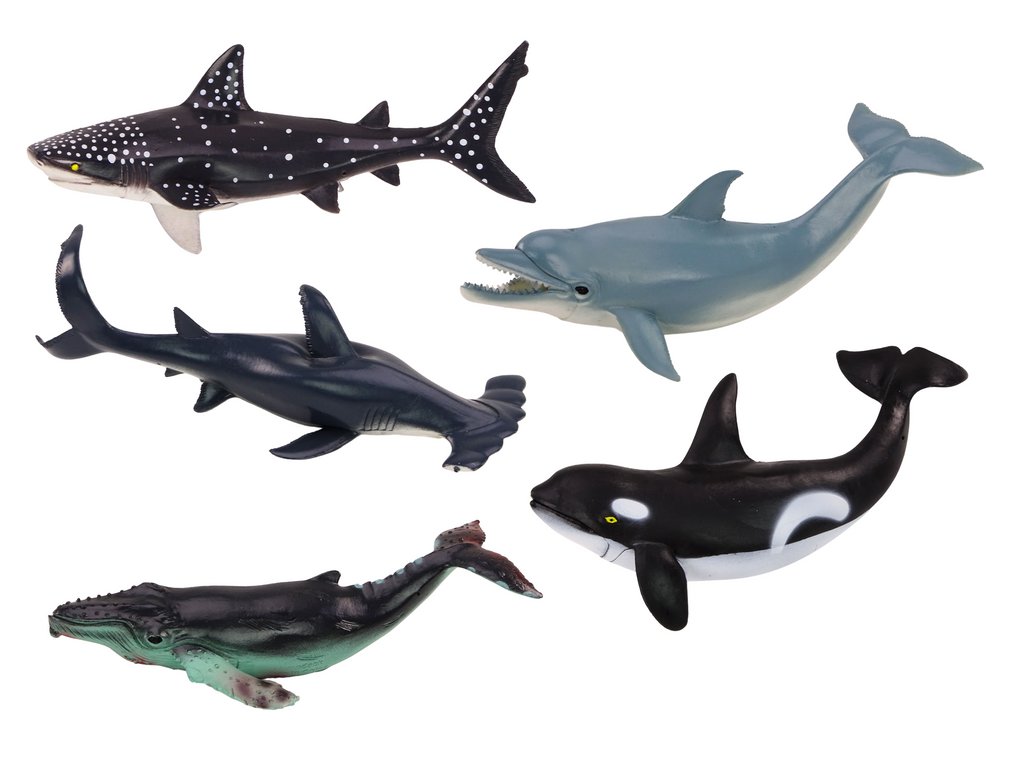 A figurák között szerepel egy orka, bálna, cápa, kalapácsfej, cetcápa és delfin. Minden figura gondosan kidolgozott tartós, mégis puha anyagból készült, így biztonságos a gyermekek számára.