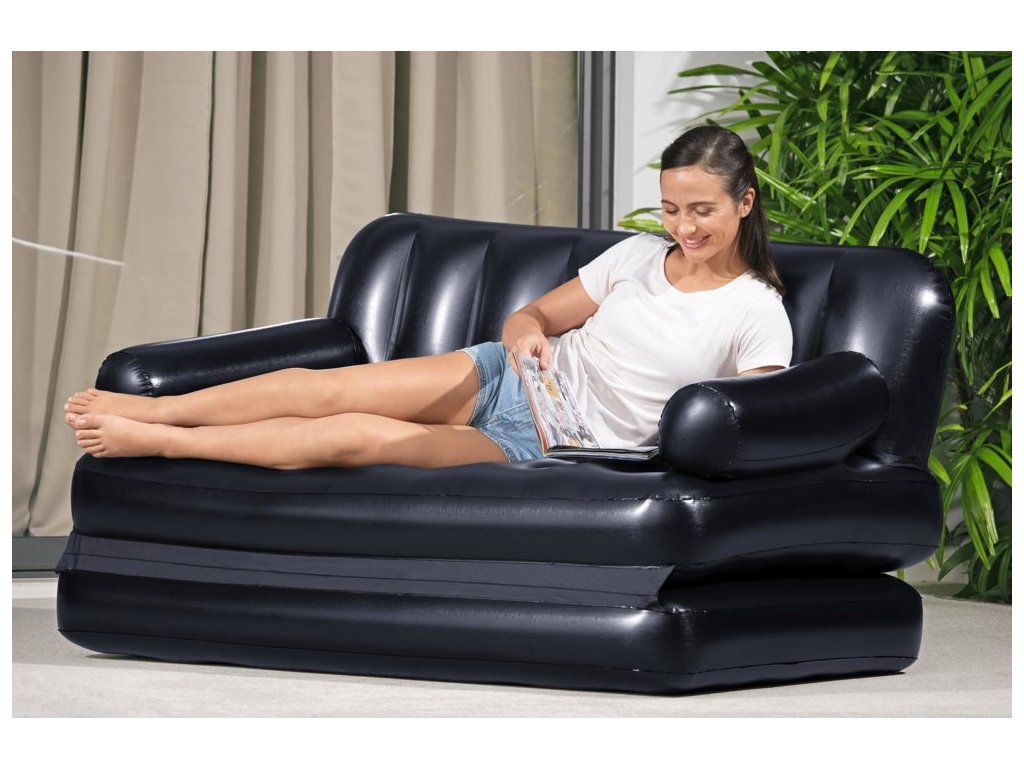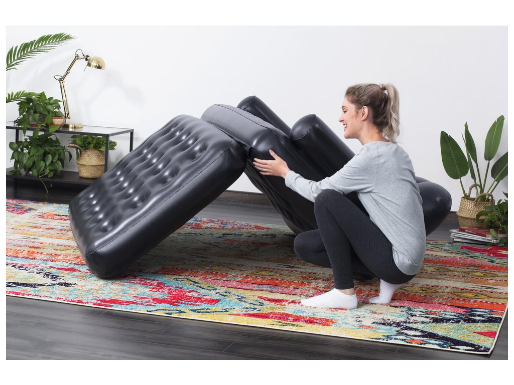 Az összecsukható felfújható ülés mérete 188 x 152 x 64 cm. Most pár másodperc alatt lecserélheti a magas kanapét franciaággyal, háttámlás ágyra vagy csak egy nagyon kényelmes matracra. A döntés egyedül a tiéd. A kanapé tartós és erős PVC anyagból készült. A kényelmes karfának köszönhetően kedvenc sorozatát nézni vagy kedvenc könyvét olvasni tiszta élvezet. A kanapé állítható pozícióval rendelkezik, melynek köszönhetően a bútort saját aktuális igényeihez igazíthatja.