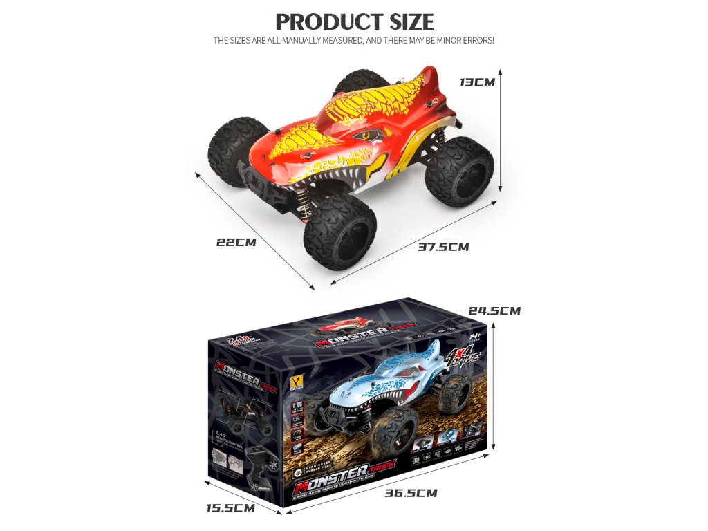 - Vonzó dizájn : A monster truck jellegzetes és vonzó dizájnnal rendelkezik, amely minden kis és nagy RC-autó-rajongó számára tetszeni fog.