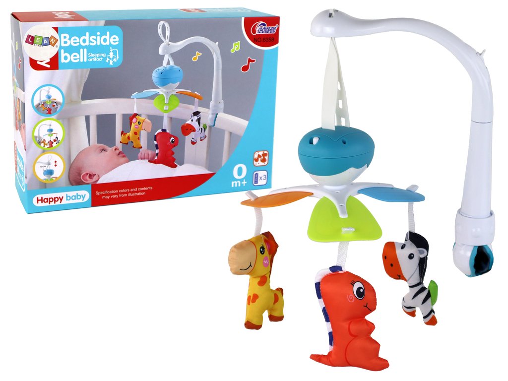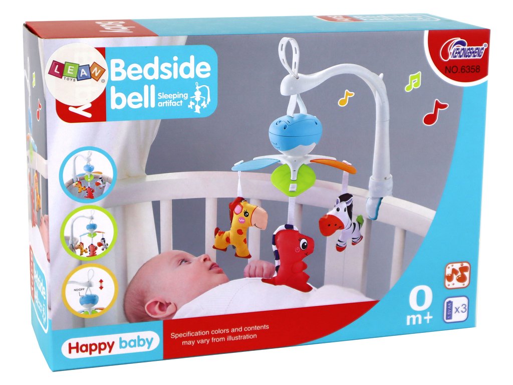 A körhinta állítható, ami azt jelenti, hogy igényeinek és ízlésének megfelelően állíthatja a magasságát. Három plüssállat van a körhintahoz rögzítve: egy zebra, egy zsiráf és egy vörös dinoszaurusz, amely a körhinta elindításakor azonnal forogni kezd. Nemcsak lenyűgöző látvány a gyermek számára, hanem inspiráló és megnyugtató szórakozás is.