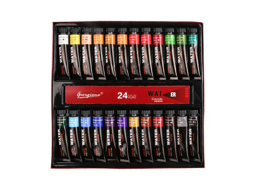 Az akrilfestékkészlet minden művész álma valóra válik. 24 db, egyenként 12 ml-es csövet tartalmaz, ideális kis és nagy művészeti projektekhez. A színek sokoldalúak, és különböző felületeken használhatók, mint például vászon, papír, fa vagy szövet.