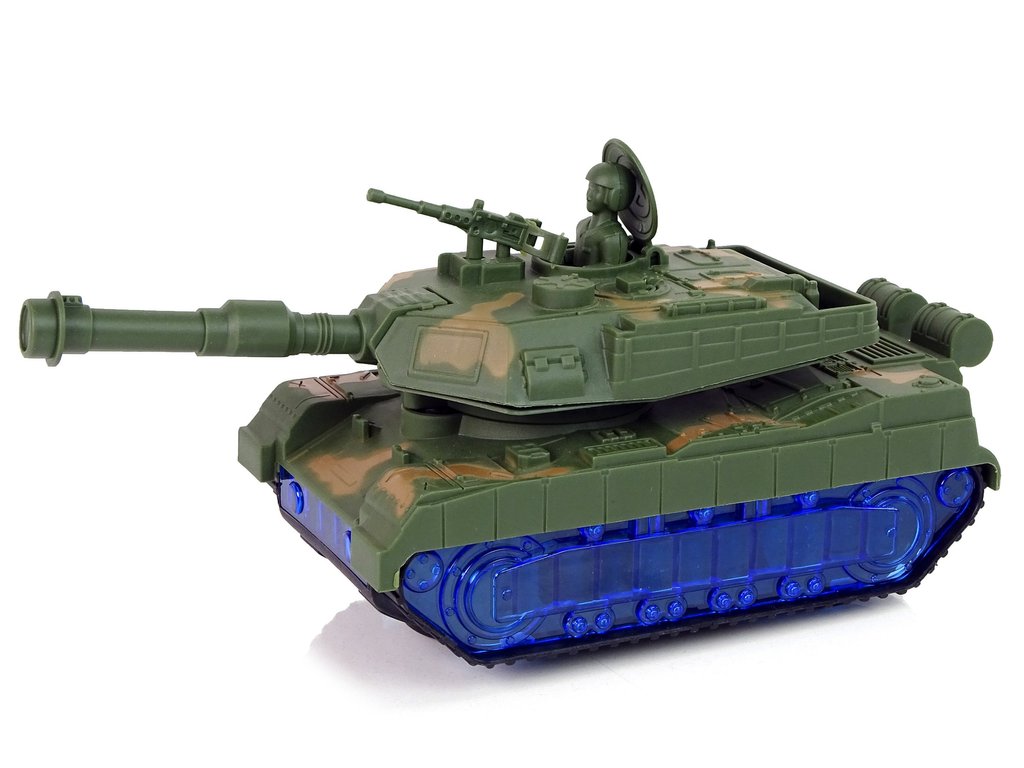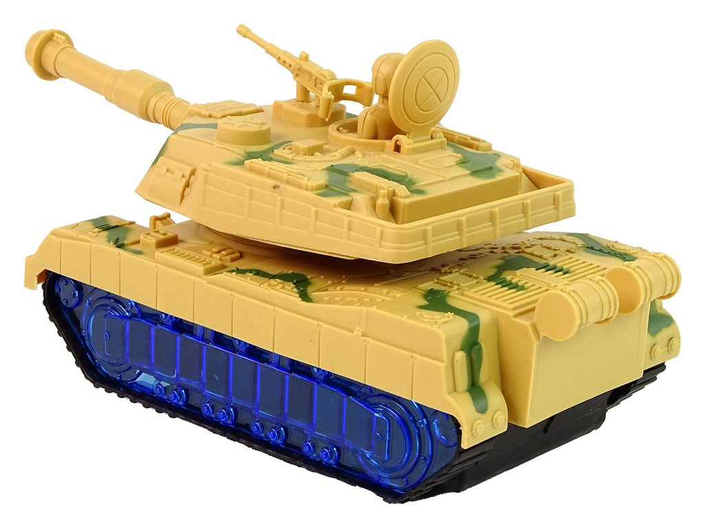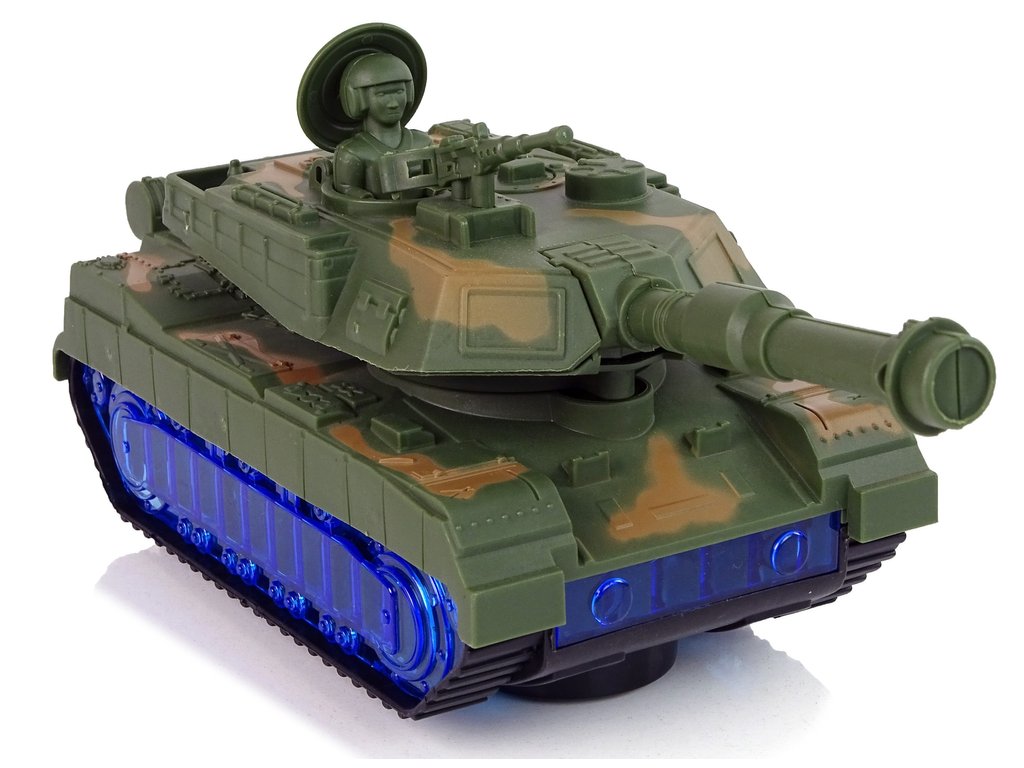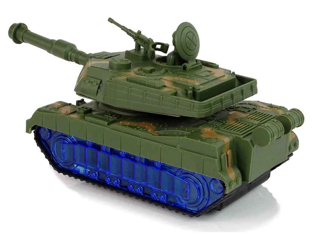 A tank háborús festékkel és lánctalpas abroncsokkal van ellátva, hogy utánozza egy igazi tank menetét. A meglepetés az, hogy a kerekek kéken világítanak LED-ekkel. Bekapcsoláskor az ágyú egyik oldalról a másikra forog, és motorhangok hallatszanak a háttérben. Minden részlete megegyezik a valódi járművel.