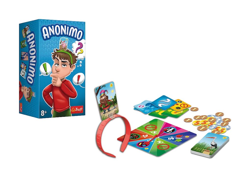 Játssz nyomozót, és próbáld kitalálni, ki vagy! Az Anonimo játékban a játékosok megpróbálják kitalálni a fejükön lévő fejpántokra helyezett szavakat. Pörgesd meg a kereket, és tudd meg, milyen további szabályok várnak rád ebben a körben.