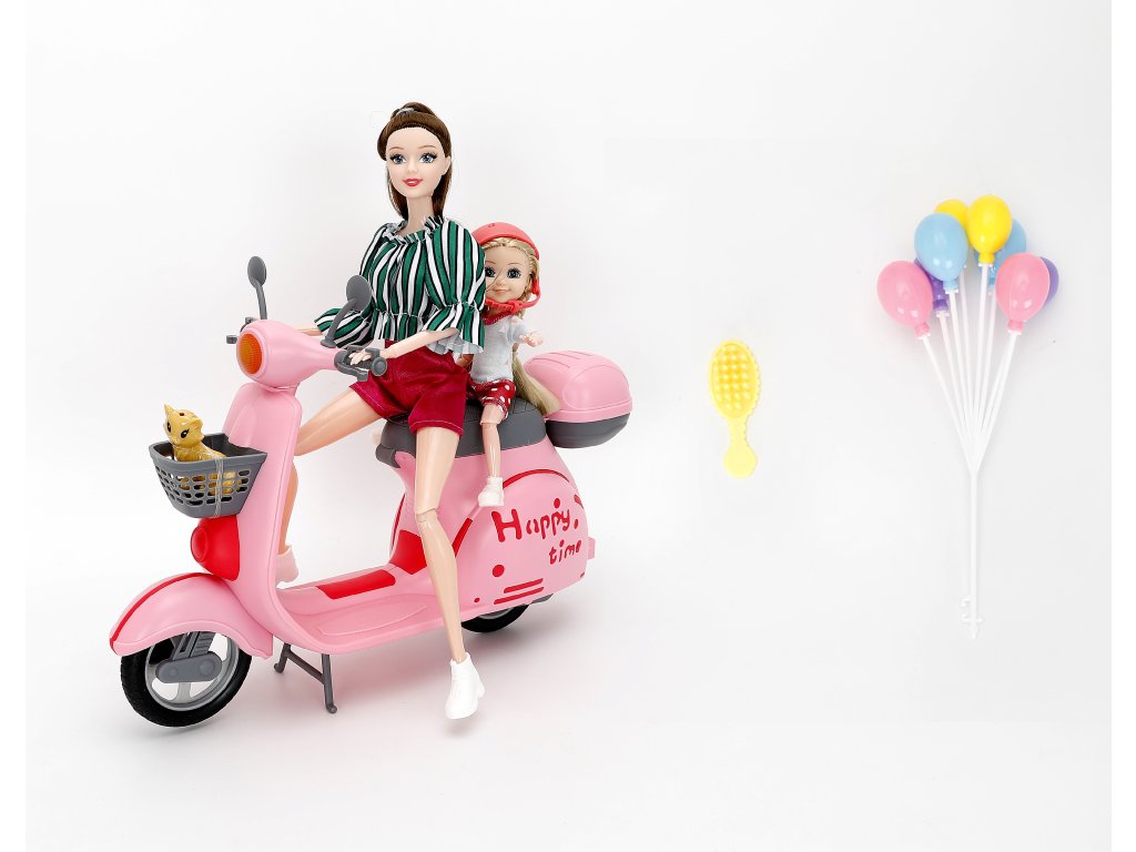 Indulj el egy szórakoztató utazásra ezzel a gyönyörű robogós babakészlettel. A nagy baba egy rózsaszín robogót vezet tárolódobozzal, míg a kisebb baba élvezi az utazást. A készlet színes léggömbökkel, sisakkal, fésűvel, lakatval és egy aranyos kiscica baráttal egészül ki. A gyerekek saját történeteket alkothatnak, gondoskodhatnak a babákról, és fantáziadús kirándulásokat játszhatnak. Ideális játék 3 éves kortól a kis babakedvelőknek.