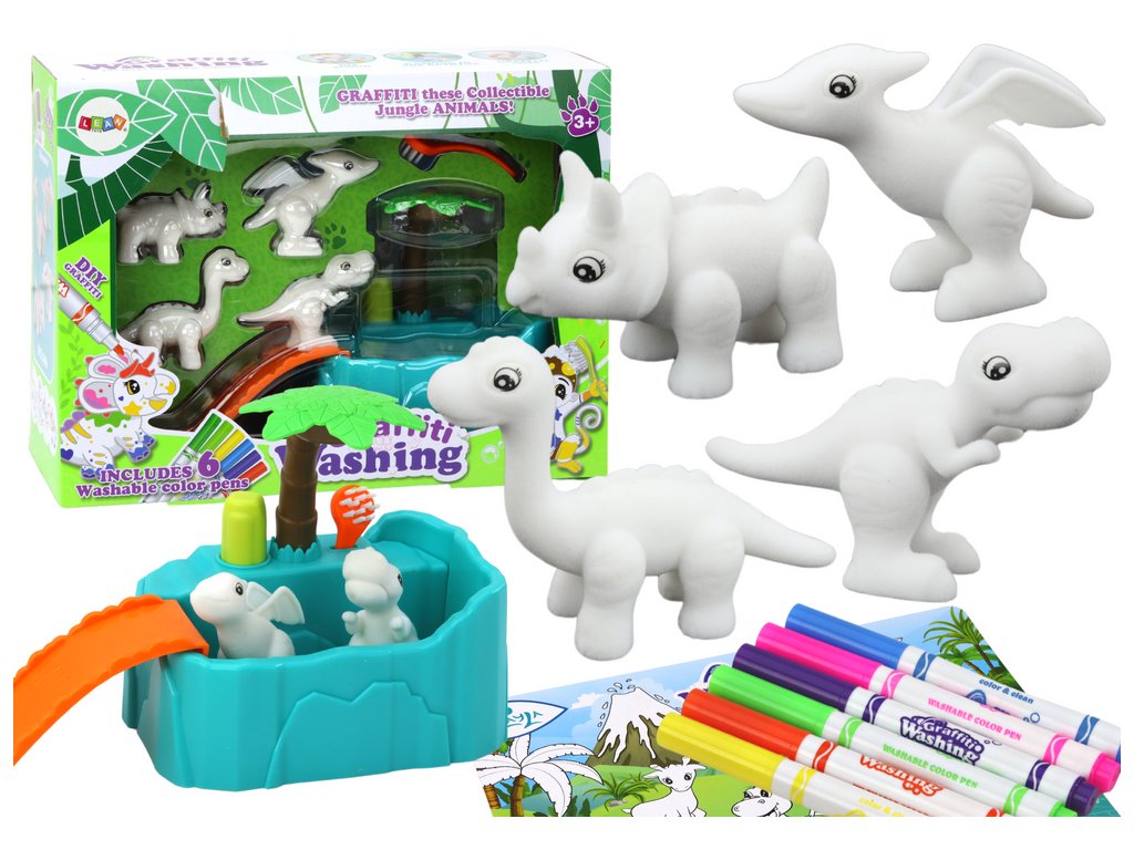Art készlet dinoszaurusz festés fürdő csúszda figurák markerek