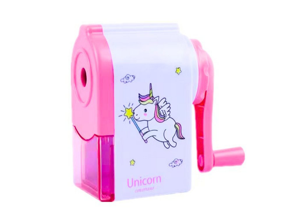 A fogantyús asztalhegyező ideális segítő a gyerekek számára, amely játékosságával és funkcionalitásával lenyűgöz. A fogantyú lehetővé teszi a ceruzák könnyű élezését különösebb erőfeszítés nélkül, amit különösen a legkisebb felhasználók értékelnek.