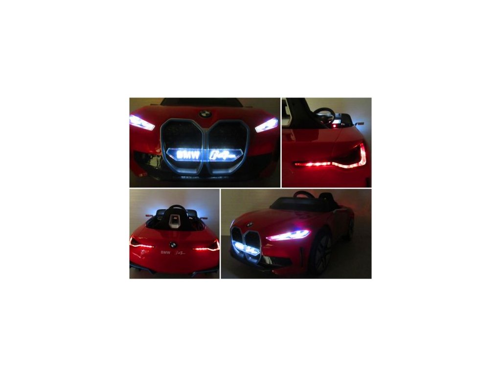 Gyermekengedélyes BMW i4 játékautó gazdag felszereltséggel és innovatív dizájnnal. EVA hab kerekekkel van felszerelve, amelyek csendesek és nem zavarják a vezetést.