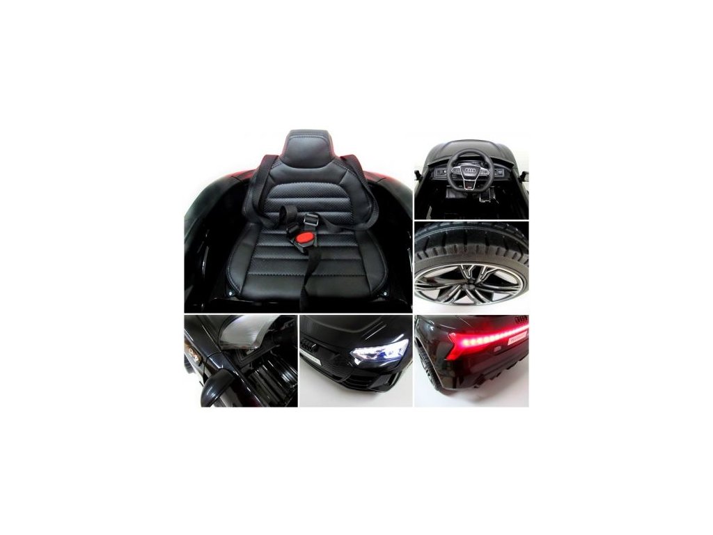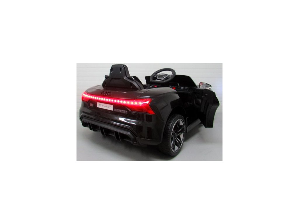 Gyermekengedélyes Audi E-Tron GT autó gazdag felszereltséggel és innovatív dizájnnal. EVA hab kerekekkel van felszerelve, amelyek csendesek és nem zavarják a vezetést.