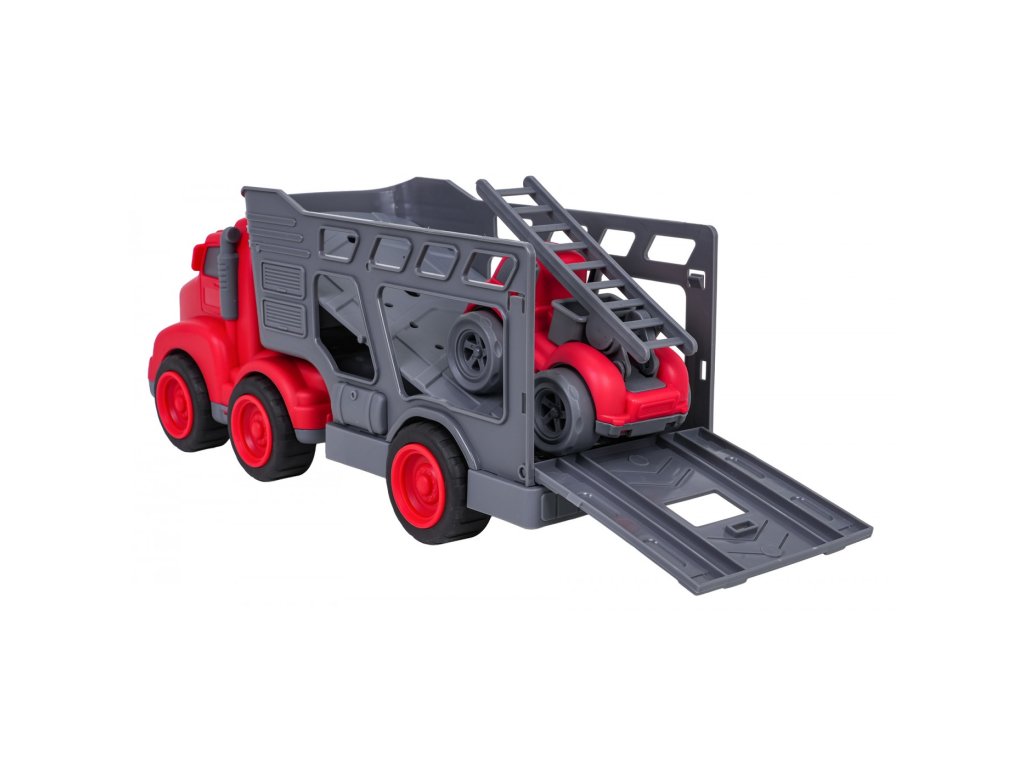 Teherautó és tűzoltóautó készlet három éves kortól. A készlet a legmagasabb minőségű műanyagból készült, élénk színekben. Nagy móka lesz az építőjárművek kis szerelmeseinek. A tűzoltóautó mozgatható kerekekkel rendelkezik az elsőkerék-meghajtással, nagyon könnyen mozog a felületen. A létrát is fel tudjuk emelni és leengedni.