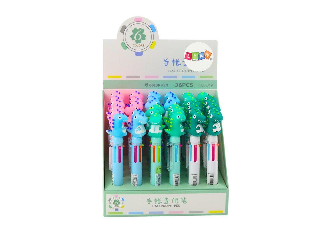 Ez a funkcionális toll ötvözi a szórakozást és a praktikumot, és akár 6 színt is kínál egyetlen íróeszközben. A tollat aranyos dinoszaurusz motívum díszíti, amely biztosan felkelti a gyerekek figyelmét és érdekesebbé teszi mindennapi írásaikat. Többféle tintaszínt tartalmaz, lehetővé téve az egyszerű színváltást anélkül, hogy tollat kellene cserélni.