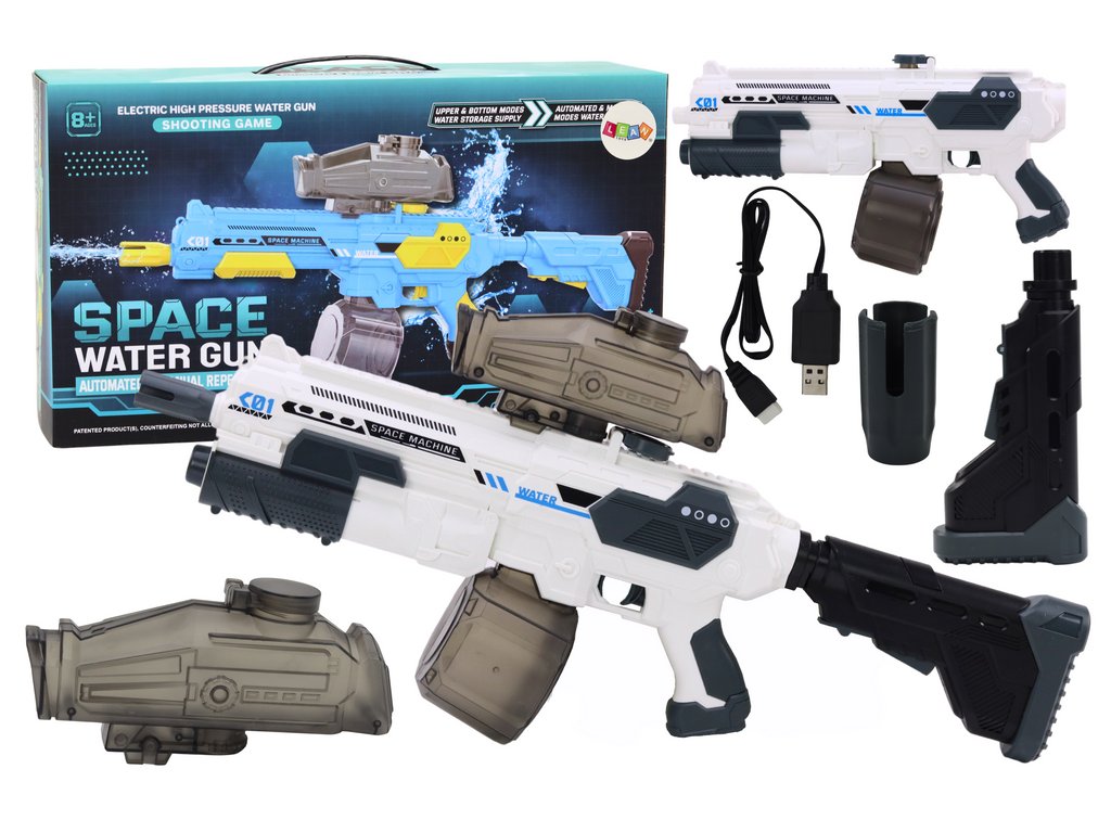 Az M416 újratölthető vízipisztoly egy modern játék, amely sok mókát hoz a nyári vízi csatákba. Két, 500 ml -es összkapacitású és akár 9 méteres hatótávolságú tartállyal rendelkezik, amely hosszú órákon át intenzív működést biztosít gyakori vízutántöltés nélkül. A pisztoly 7,4 V-os akkumulátorral van felszerelve, amely a mellékelt töltővel egyszerűen tölthető, és a kényelmes be-/kikapcsolónak köszönhetően könnyen kezelhető. Ideális szórakozással és mozgással teli szabadtéri játékokhoz.