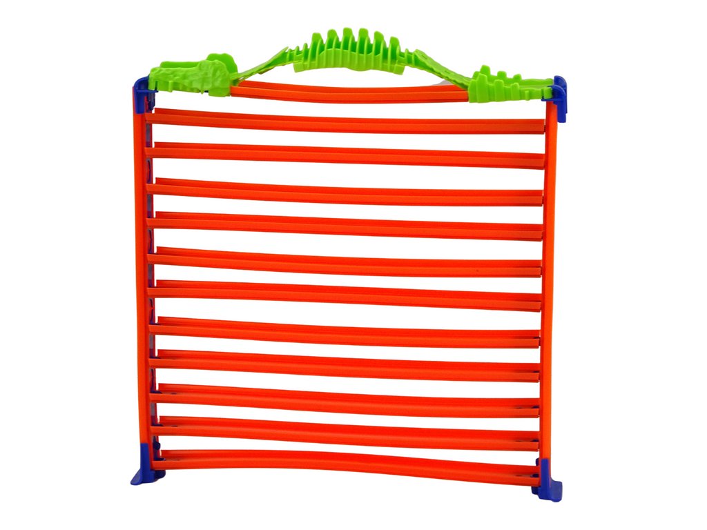 A sínelemek könnyen összepattannak, így a pálya összeszerelése gyors és egyszerű. Ennek köszönhetően a gyerek különösebb nehézség nélkül megépítheti saját versenypályáját. A szerkezet garázsra hajtása után a zöld elemek stabil szállító fogantyút alkotnak. Ez megkönnyíti a készlet szállítását és tárolását, ami különösen hasznos utazás vagy baráti látogatás során.