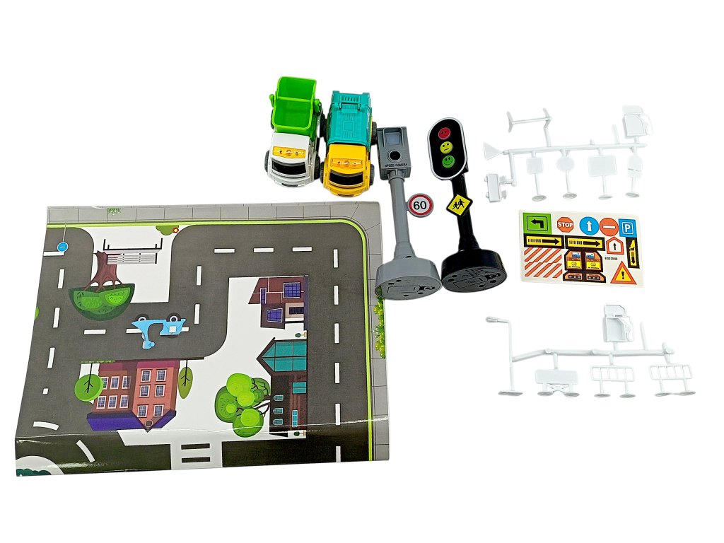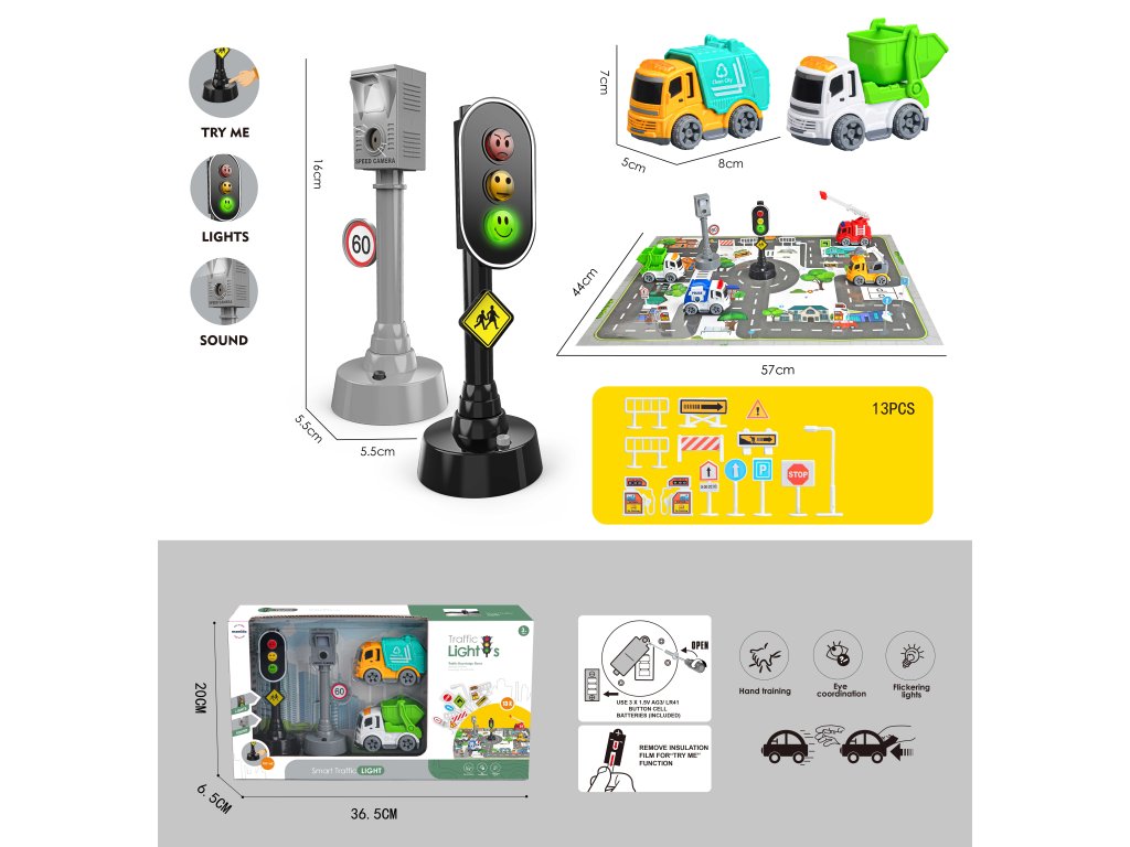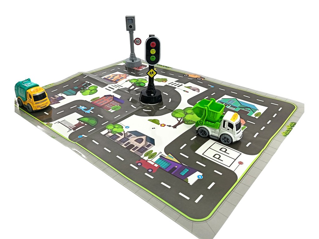 Bemutatkozik egy játékautó-készlet fényjelzésekkel és közlekedési táblákkal. Ideális készlet a közúti közlekedési szabályok és a biztonságos közlekedés elsajátításához. Ez a készlet egy oktatójáték, amely a jövőben megtérül gyermeke számára.