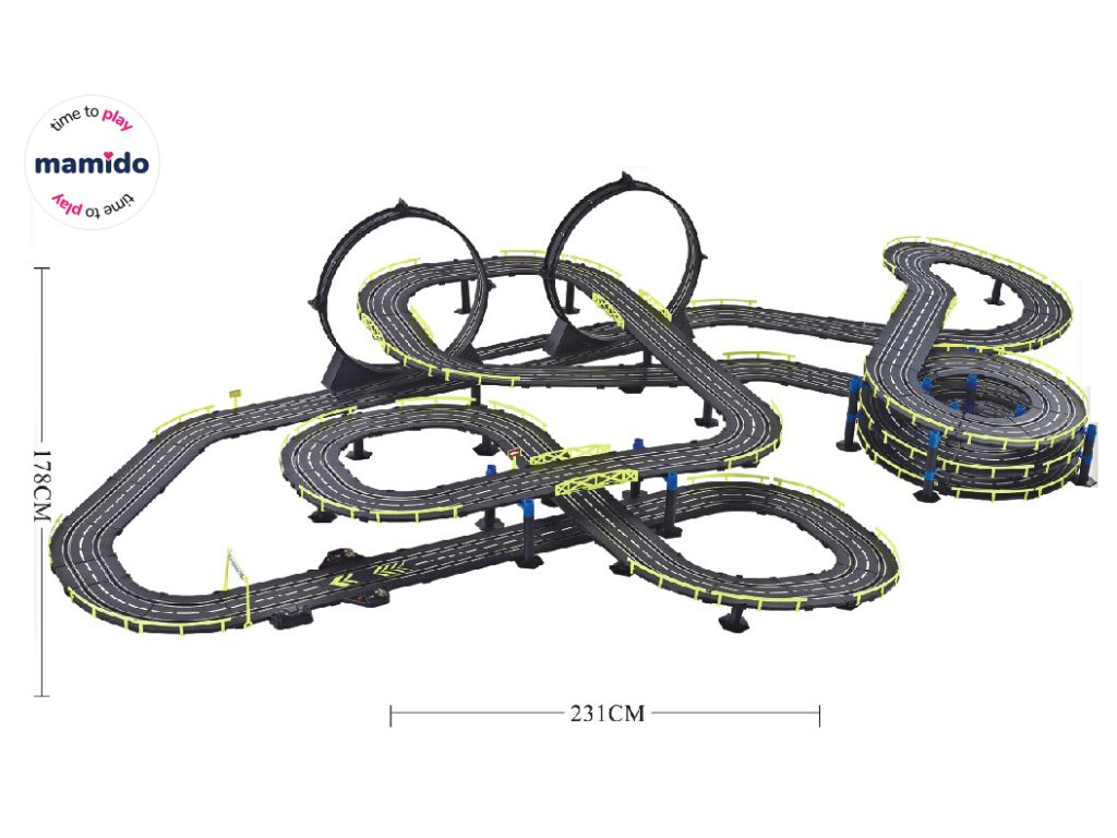 Nagy autópálya éles kanyarokkal, nyolcasokkal és 360 fokos hurkokkal rendelkezik. A csomag tartalmaz két 1:43 méretarányú autót, amelyek világító effektekkel rendelkeznek. A csomagban két vezérlő található, amelyek felelősek az autók vezetéséért és sebességéért.