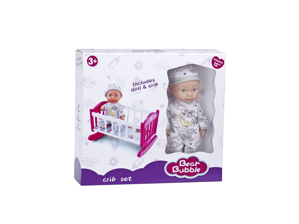 A baba finom vonásokkal rendelkezik, mozgatható karokkal és lábakkal, és kényelmes pizsamát visel sapkával. Tartozik hozzá egy stabil bölcső lengő sínekkel, amely lehetővé teszi a könnyű ringatást. A gyerekek saját történeteket hozhatnak létre és fejleszthetik fantáziájukat.
