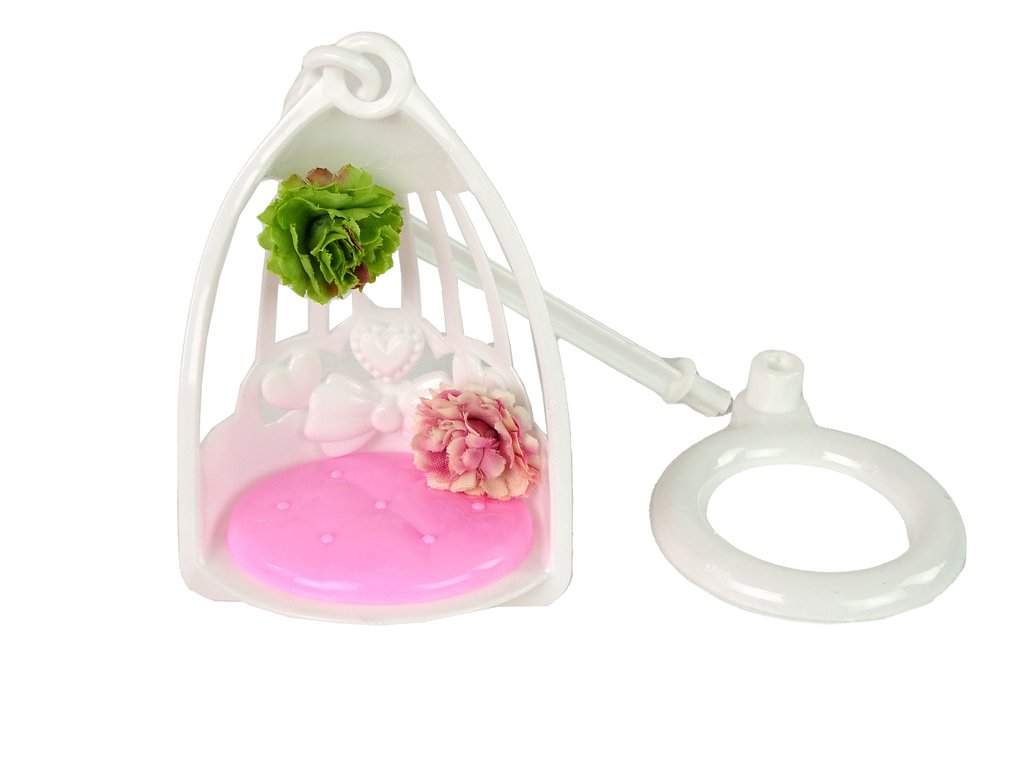 A készletben gyönyörű virágok is találhatók, amelyek a fehér ülést díszítik - egy 12 cm magas hinta. Ez a hinta tökéletes az Emilynél kisebb babákkal vagy állatokkal való játékhoz.