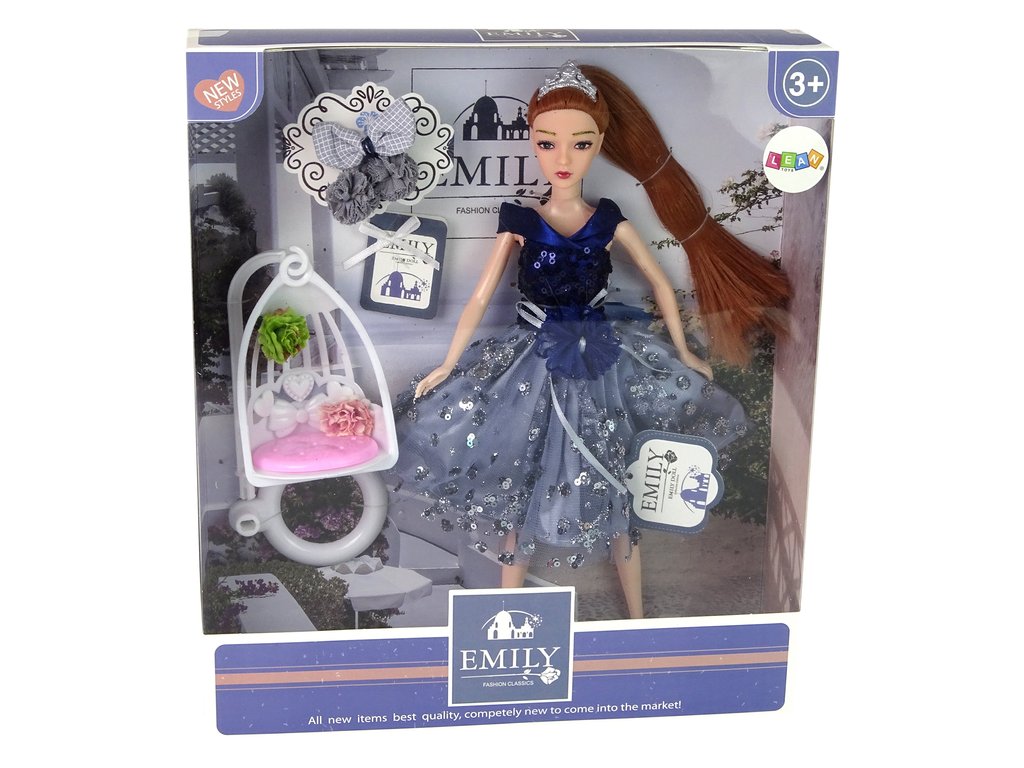 Bemutatjuk az imádnivaló Emily babát, akinek hosszú, vörös árnyalatú haja és kék szeme van, amely tovább fokozza csillogását. Emily csillámokkal és flitterekkel díszített sötétkék ruhába és fekete rózsaszín sarkú cipőbe öltözött. A fején egy hajpánt csillog. A baba a részletekre való odafigyeléssel készült, és nagyszerűen kiegészíti gyermeke babagyűjteményét.