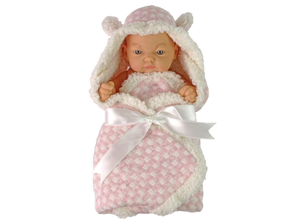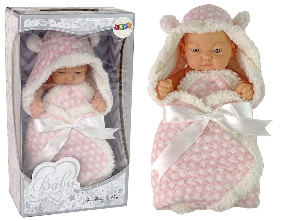 Sok lány álmodik saját babáról, amiről úgy tudunk majd gondoskodni, mint a saját babánkról. A baba rózsaszín pólyába van csomagolva, fehér masnival. A babának mozgatható kezei vannak.
