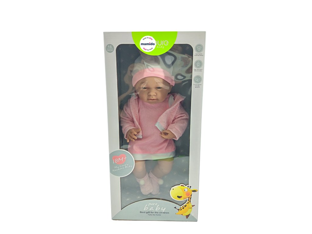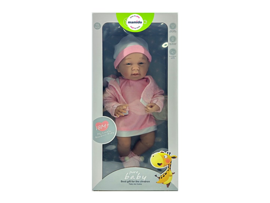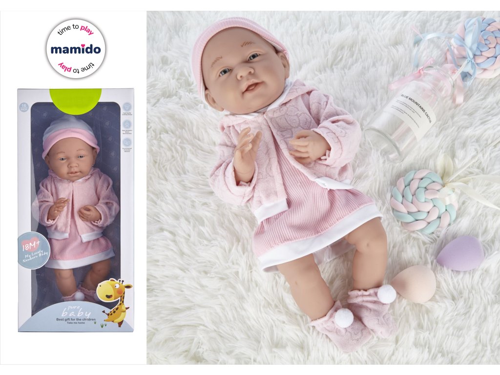 Baba rózsaszín ruhában sapkával 35 cm MT1102