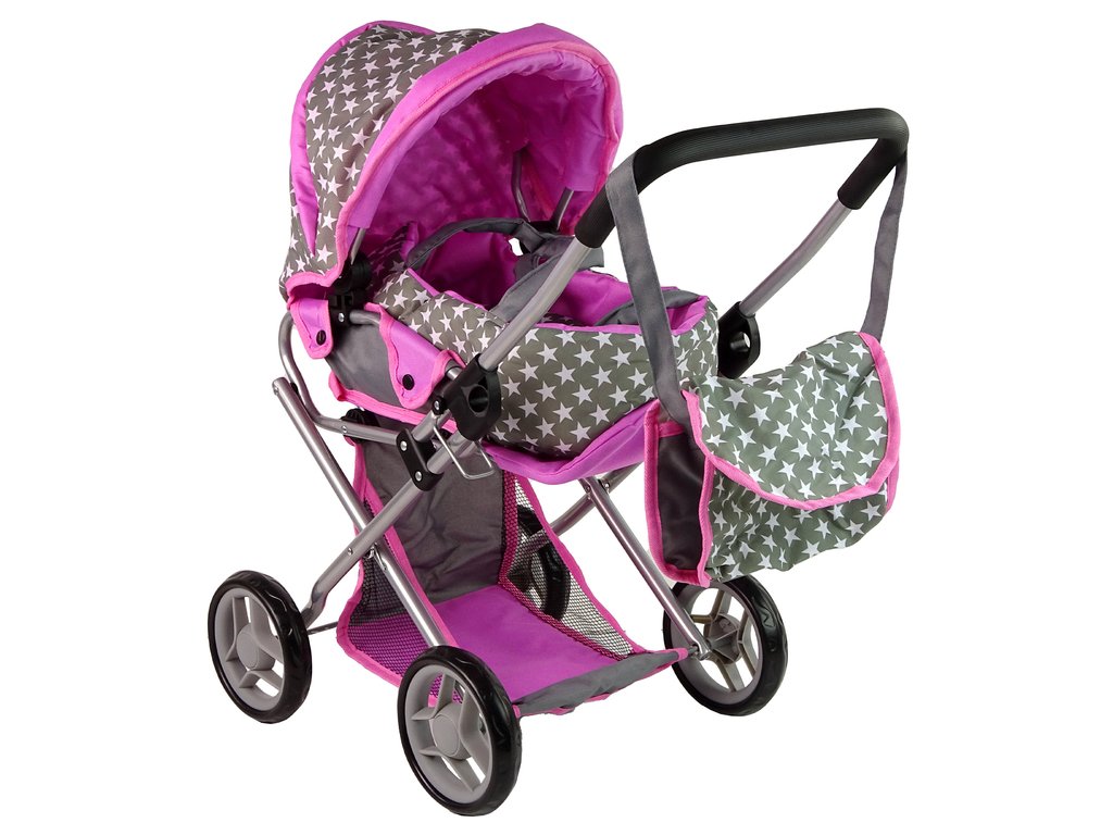 Babakocsi 2 az 1-ben rózsaszín, csillagokkal