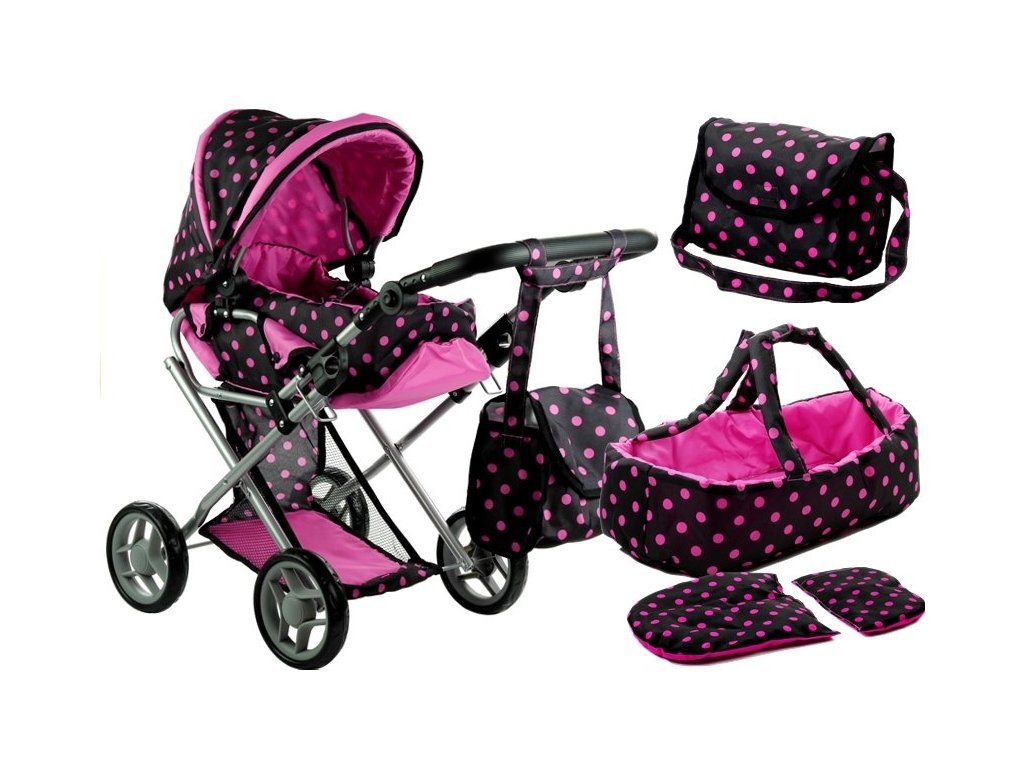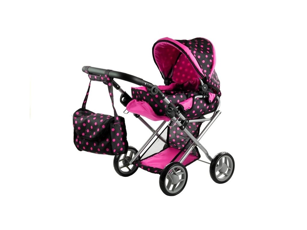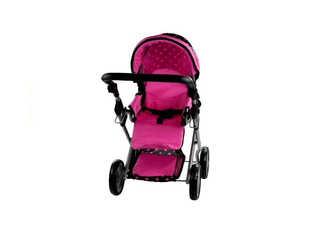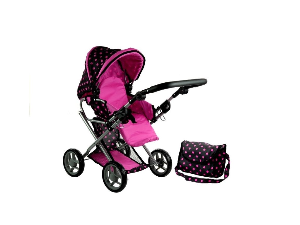 Egy bájos, gyönyörű színekben pompázó babakocsit mutatunk be, mely tökéletes ajándék lesz minden 3 évesnél idősebb lánynak. Előnye az állítható magasságú habszivacs fogantyú és a játék közbeni önösszeszerelést megakadályozó biztonsági zár. A magasság megváltoztatásához nyomja meg egyszerre a fogantyú mindkét oldalán található gombokat, és válassza ki a pozíciót. A babakocsihoz egy nagy táska és egy nagy kosár tartozik, amelyekben a játék gondozásához szükséges eszközöket és kiegészítőket használhatja. A babakocsiban ágyneműt talál, amely takarókból és párnákból áll. A babakocsi a legjobb minőségű, tanúsított anyagokból készült, ami garantálja a játék megbízhatóságát és hosszú élettartamát. A kocsi CE tanúsítvánnyal van ellátva.