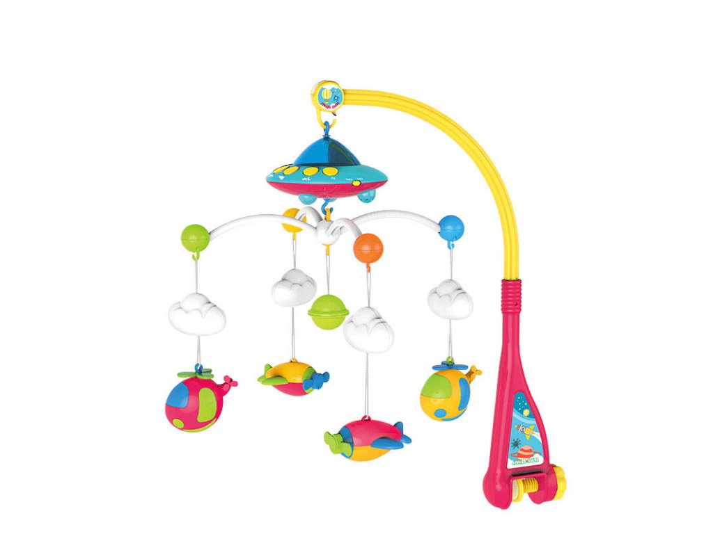 A körhinta egy aranyos UFO formájú játékdoboz formájú, ami modern és vonzó megjelenést kölcsönöz neki, tökéletes egy gyerekszobába. A körhinta karjaiban repülő és helikopter formájú játékok függenek, amelyek finoman a zene ritmusára forognak, serkentik a gyermek érzékszerveit és megfigyelésre ösztönzik. Ennek köszönhetően fejlődik a gyermek motoros és észlelési képességei, követve a mozgó elemeket.