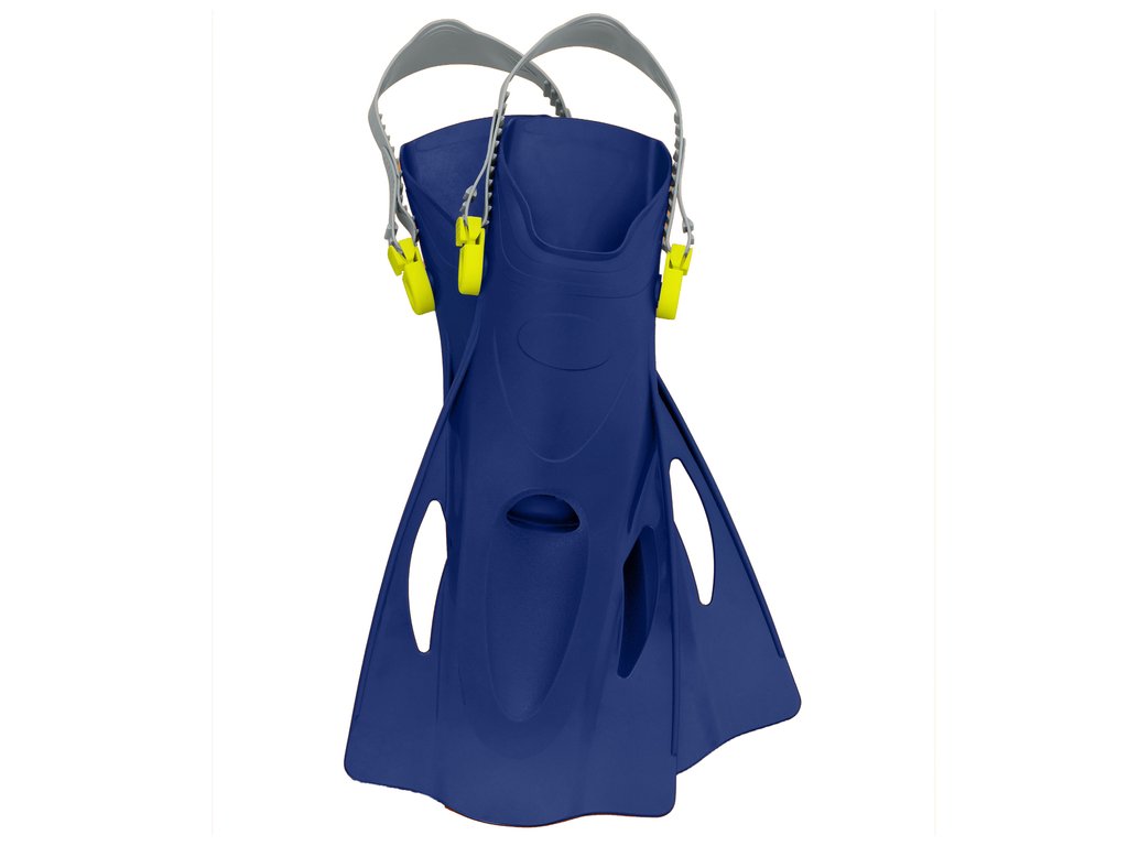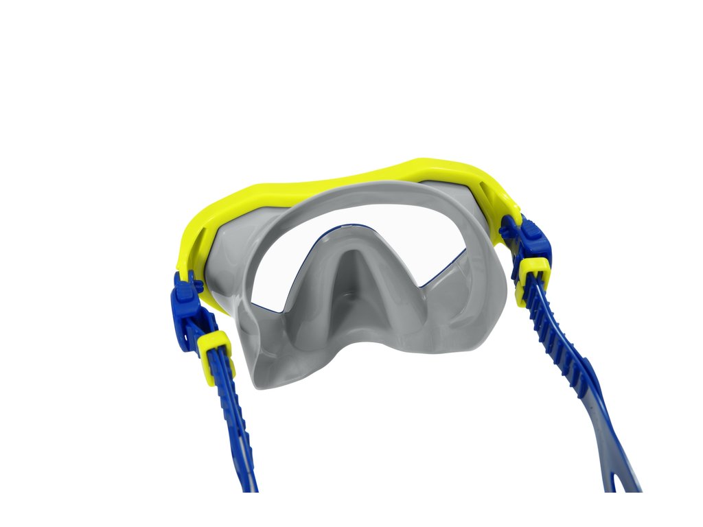 A szemüveg UV-védő lencsékből készült. A szemüveg körül is puha fényudvar található, és kényelmesen illeszkedik a gyermek arca köré, megakadályozva, hogy víz kerüljön a szemüvegbe. Van egy állítható fejpánt is, amelyet a gyermek fejéhez igazíthat. A víz alatti kalandok során is stabilitást biztosít. Puha uszonyok , amelyek nem csúsznak le a lábról, és tökéletesen illeszkednek a 37-41-es mérethez. A légzőcső olyan technológiával van felszerelve, amely megakadályozza a víz bejutását.