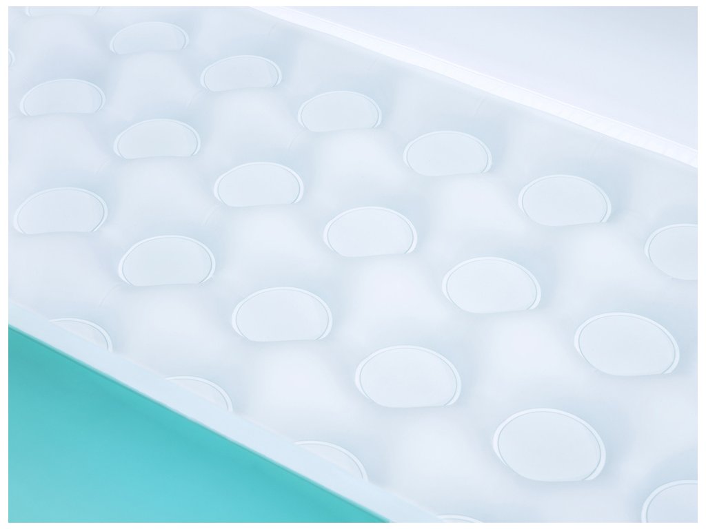 A medence puha, de strapabíró vinil anyagból készült, és biztonsági szelepeket tartalmaz a levegő szivárgásának megakadályozására. A felfújható, széles, téglalap alakú gyűrű stabil oldalfalakat hoz létre, a tartós és puha felfújható alsó pedig kényelmes illeszkedést biztosít.
