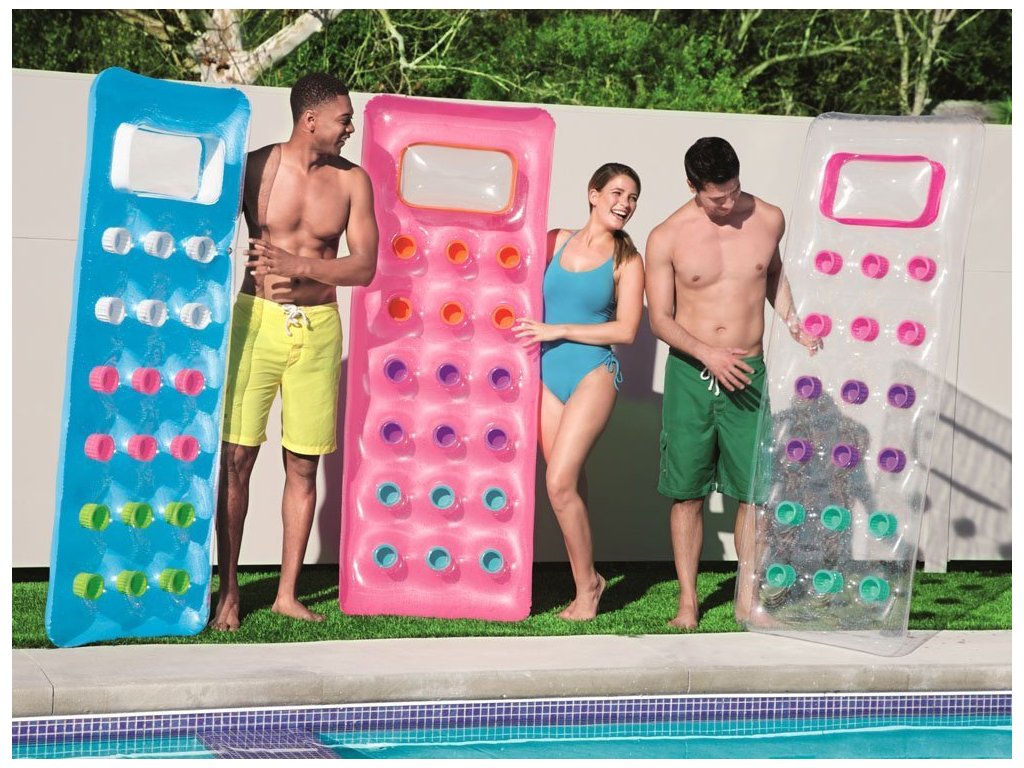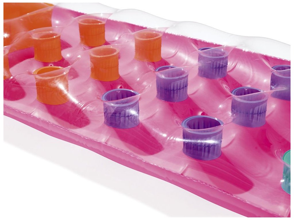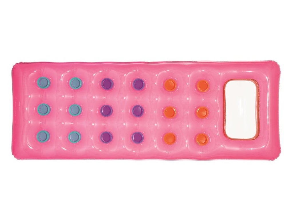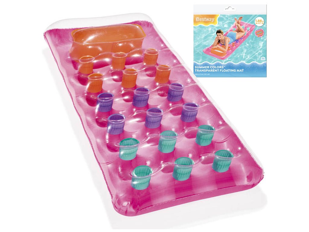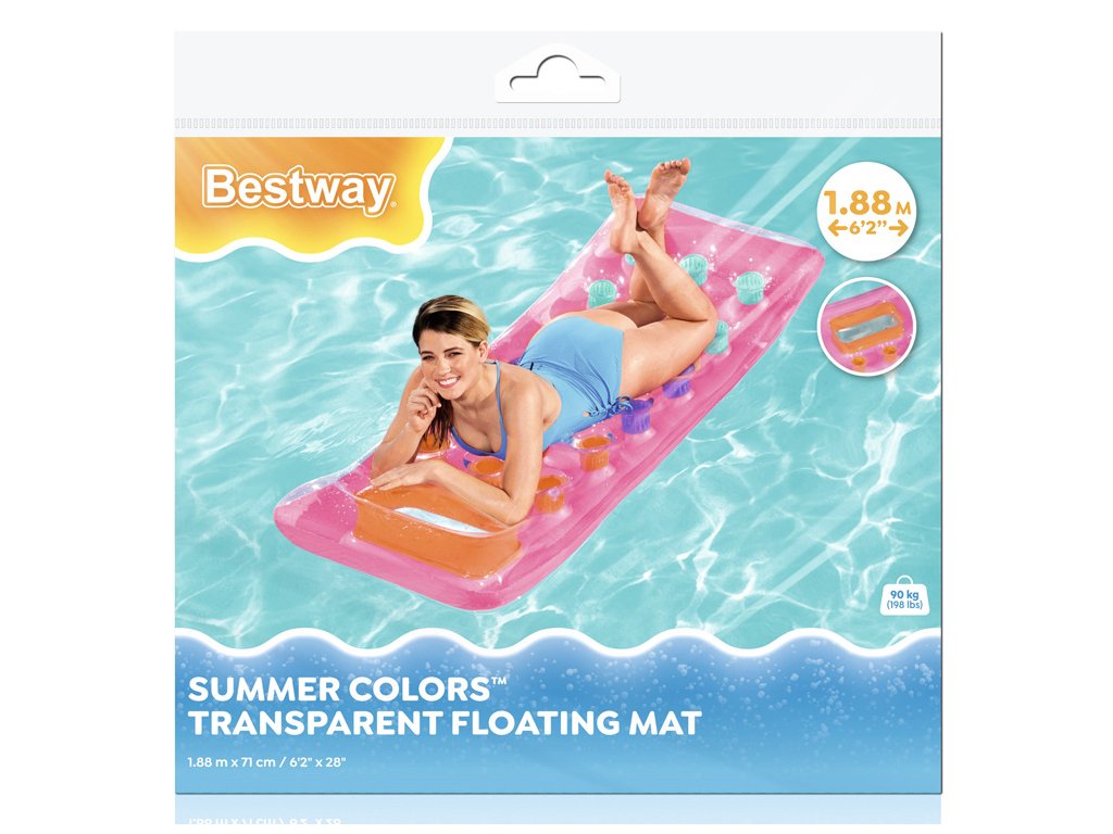 A csodálatos Bestway felfújható úszómatrac ideális társ a vízen való pihenéshez. A színes, átlátszó ablakú matrac maximális élvezetet biztosít a pihenés során. Ez a nyári, friss színekben pompázó termék minden strandon remekül mutat. A matrac PVC-ből készült, maximális teherbírása 90 kilogramm. 188 x 71 cm-es matracfelületével gond nélkül elfér benne egy felnőtt is.