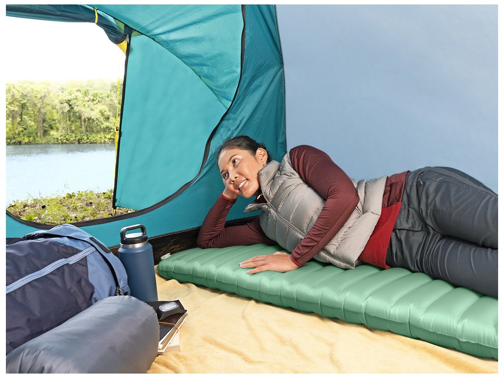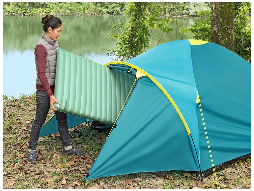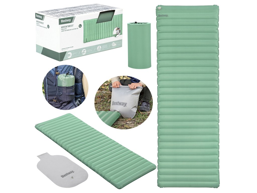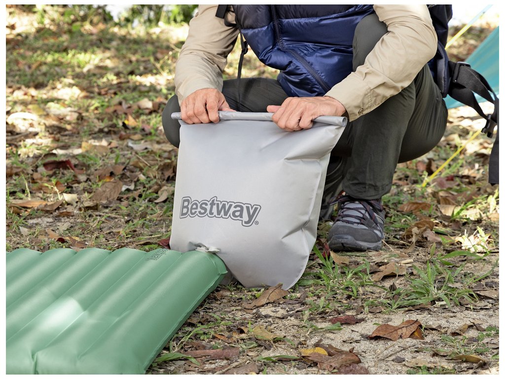 A Bestway AdventuRest túraszőnyeg ideális megoldás mindazok számára, akik szeretik a kényelmes pihenést a tengerparton, kempingezni vagy egyszerűen csak aludni egy sátor alatt a friss levegőn. A téglalap alakú betét még nagyobb hálózsákokban is remekül működik. A matrac előnye a könnyű és gyors felfújás az innovatív AirCinch™ rendszernek köszönhetően. A felfújás zacskó segítségével történik, csak a tenyerével nyomja meg (gyártói információ), hogy a matrac megtöltse levegővel. Nem kell attól tartania, hogy elfelejti becsomagolni a szivattyút , mert ez a készlet kész. Amikor a matrac megfelelő felfújással rendelkezik, el kell zárni a szelepet, és élvezni kell a pihenést.