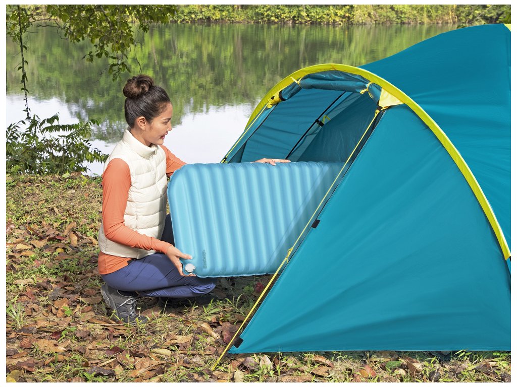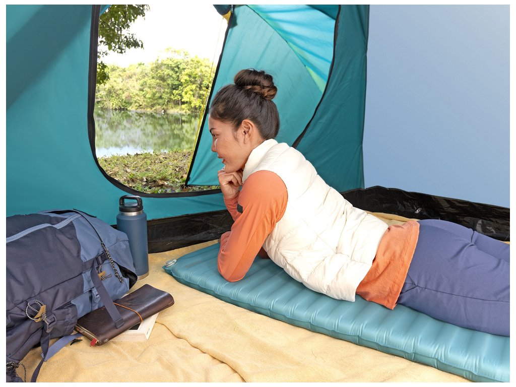 Ennek a szőnyegnek a fő előnye a könnyű felfújás – csak nyissa ki a szelepet, és a szőnyeg 5,1 cm vastagságig megtelik levegővel. Így nem kell aggódnia, ha becsomagolt egy szivattyút, és helyet takarít meg a poggyászában! Az összecsukható szőnyeg nagyon kis helyet foglal, így tökéletesen elfér egy hátizsákban, aminek köszönhetően bárhová magaddal viheted.