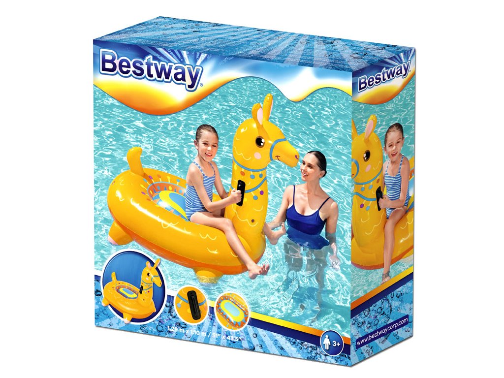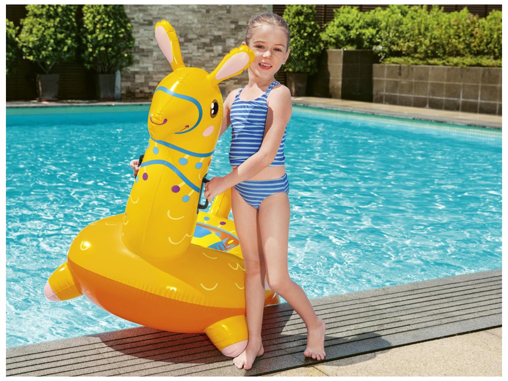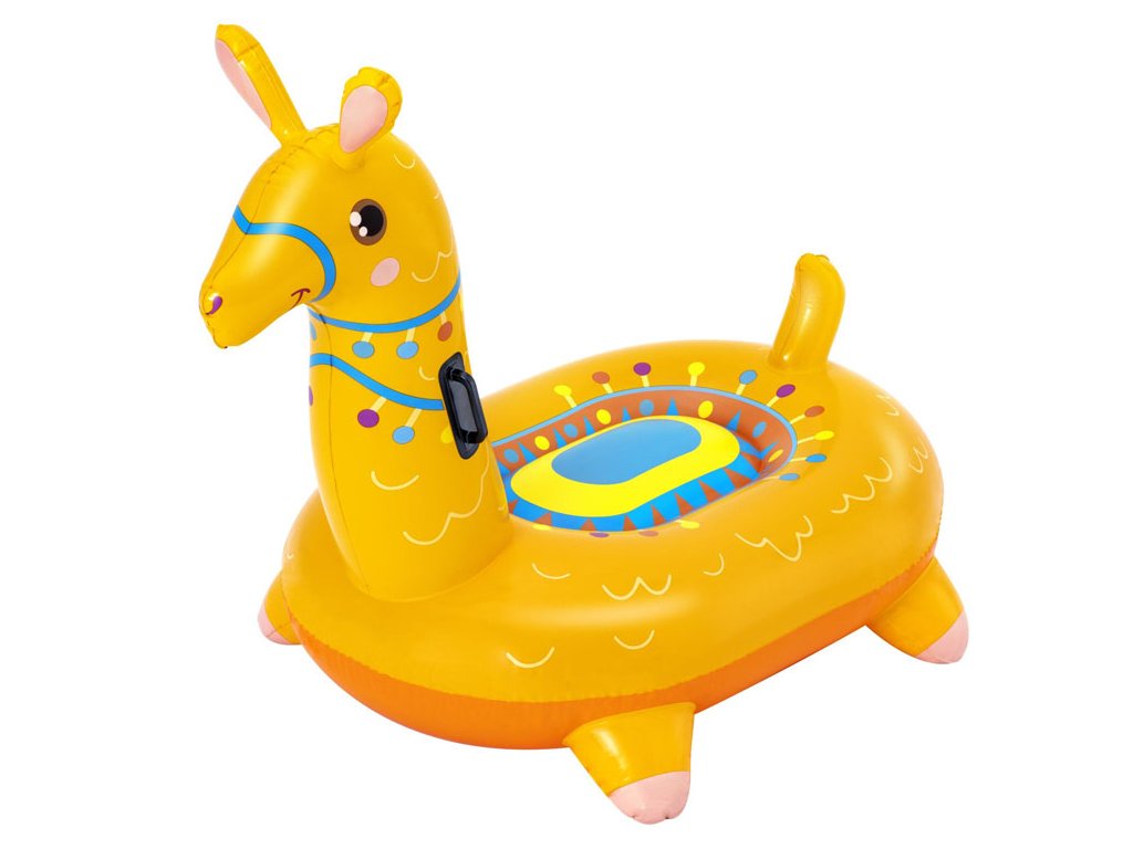 A Bestway® Llama Kiddie a Bestway nagyszerű ajánlata minden gyermek számára. Ideális otthoni medencés játékhoz vagy nyaraláshoz. A strapabíró PVC anyagból készült, sérüléseknek és napfénynek ellenálló ajándék két erős fogantyúval van felszerelve, amelyek megkönnyítik a gyermekek kezében a vízben való játék közben. Kivételes és eredeti kialakításának köszönhetően a láma minden gyermek figyelmét felkelti. Remek lesz a tenger, a tó vagy a medence melletti pihenéshez. A parti grafika, a színek és a négy mini láb hiteles megjelenést kölcsönöz neki. Csak fújd fel a lámát, és máris készen állsz egy tökéletes napra a vízen.