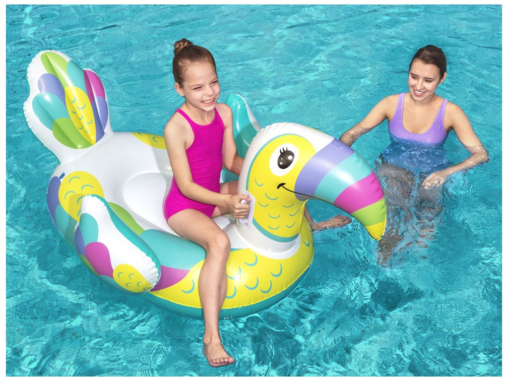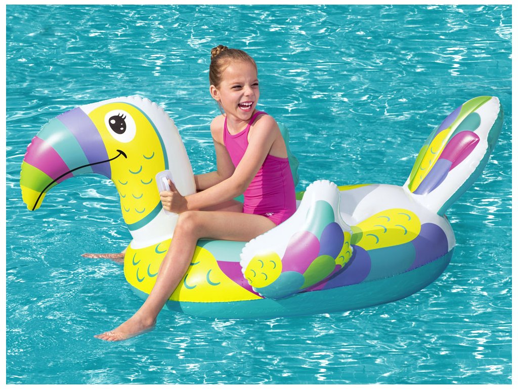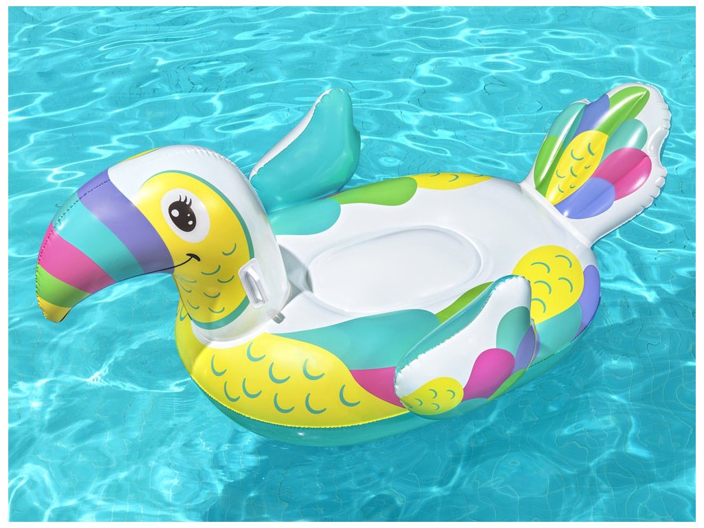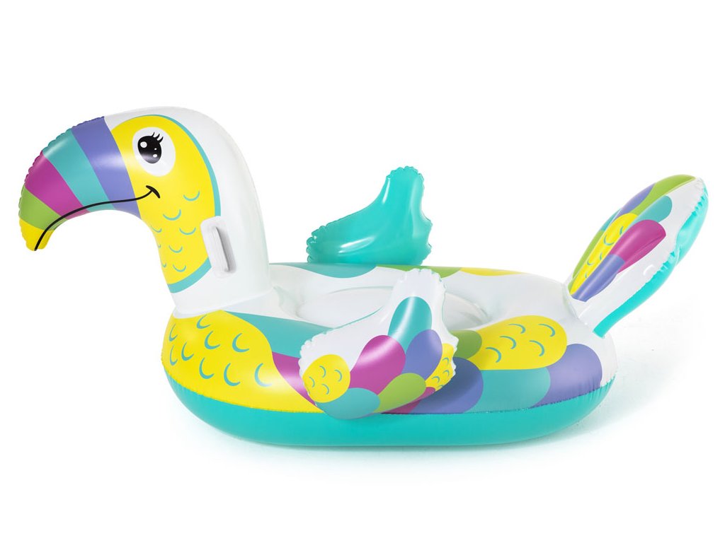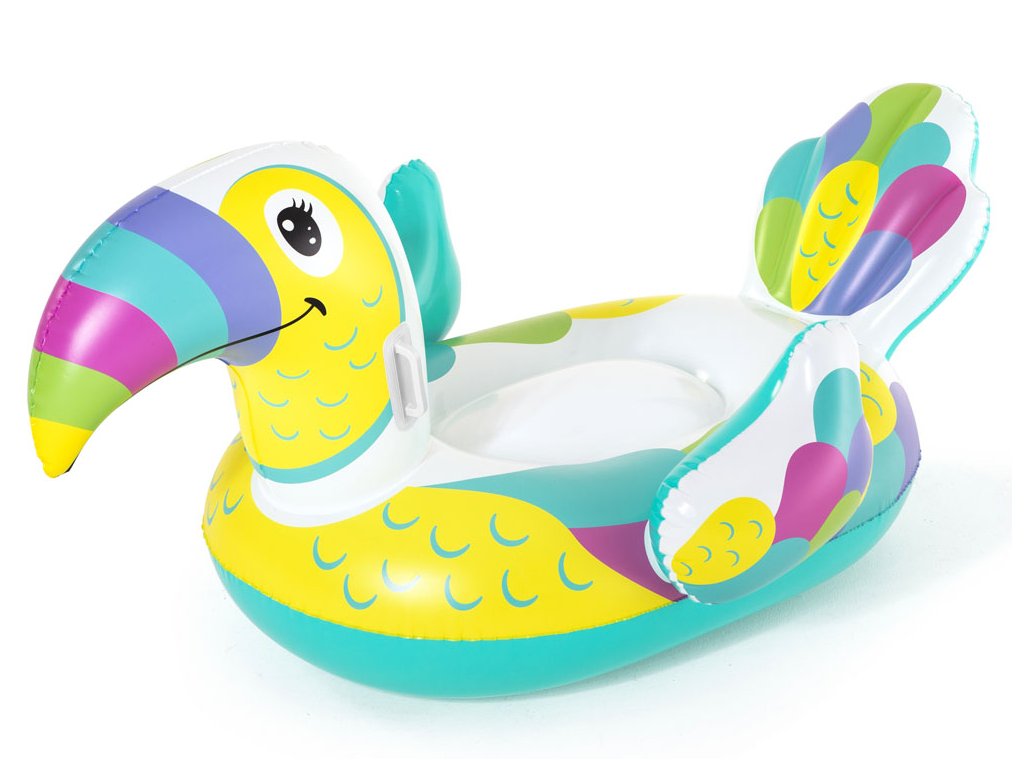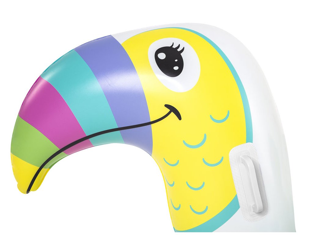 A felfújható Toucan Pontoon Bestway® nagyszerű társ gyermekei számára. Ez a játék nemcsak otthon, a medencében szórakoztatja gyermekeit, hanem a vakáció remek kiegészítője is lesz. A ponton tartós PVC anyagból készült, amely ellenáll a sérüléseknek és a napfénynek. Két erős fogantyúval is fel van szerelve, amelyek megkönnyítik a gyermekek vízben való tartózkodását. Egyedülálló, gyönyörű tukánmadár formája minden madárbarát figyelmét felkelti, és tökéletes a tenger, a tó vagy a medence melletti pihenéshez.