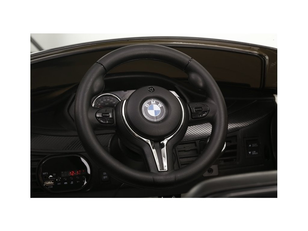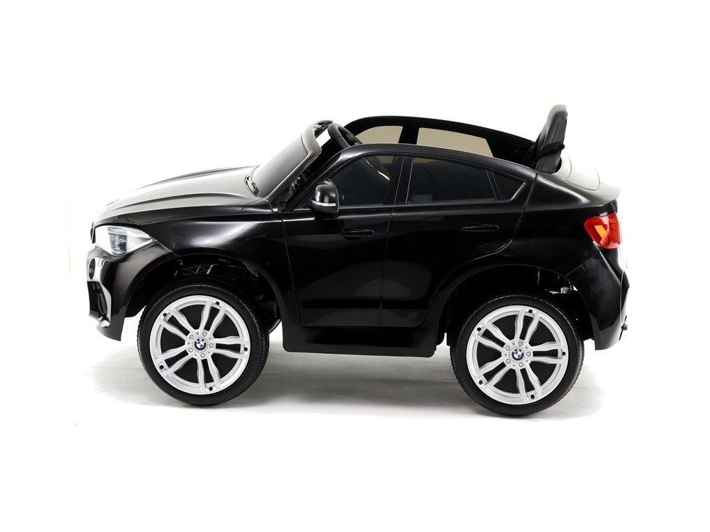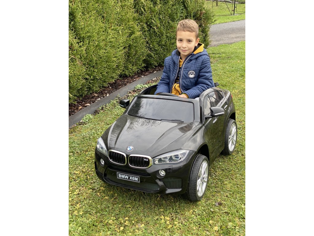 BMW X6 elektromos gyerekautó innovatív távirányítóval a szülők számára. Az elektromos játék kényelmes üléssel rendelkezik, és az ülésre biztonsági öv van elhelyezve a gyermek biztonsága érdekében. A játékautó műszerfallal, kormánnyal, izzó első lámpákkal és audio panellel van felszerelve. A jármű kétféleképpen irányítható, vagy a szülőknek szánt távirányítóval, ahol a szülő választja meg a menet irányát és sebességét, vagy a gyermek teljesen önállóan vezetheti a játékautót . Az elektromos játék kerekei puha habból készültek, így sima és kellemes utazást tesznek lehetővé. BMW X6 a nagy autók minden szerelmesének!