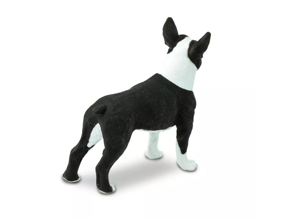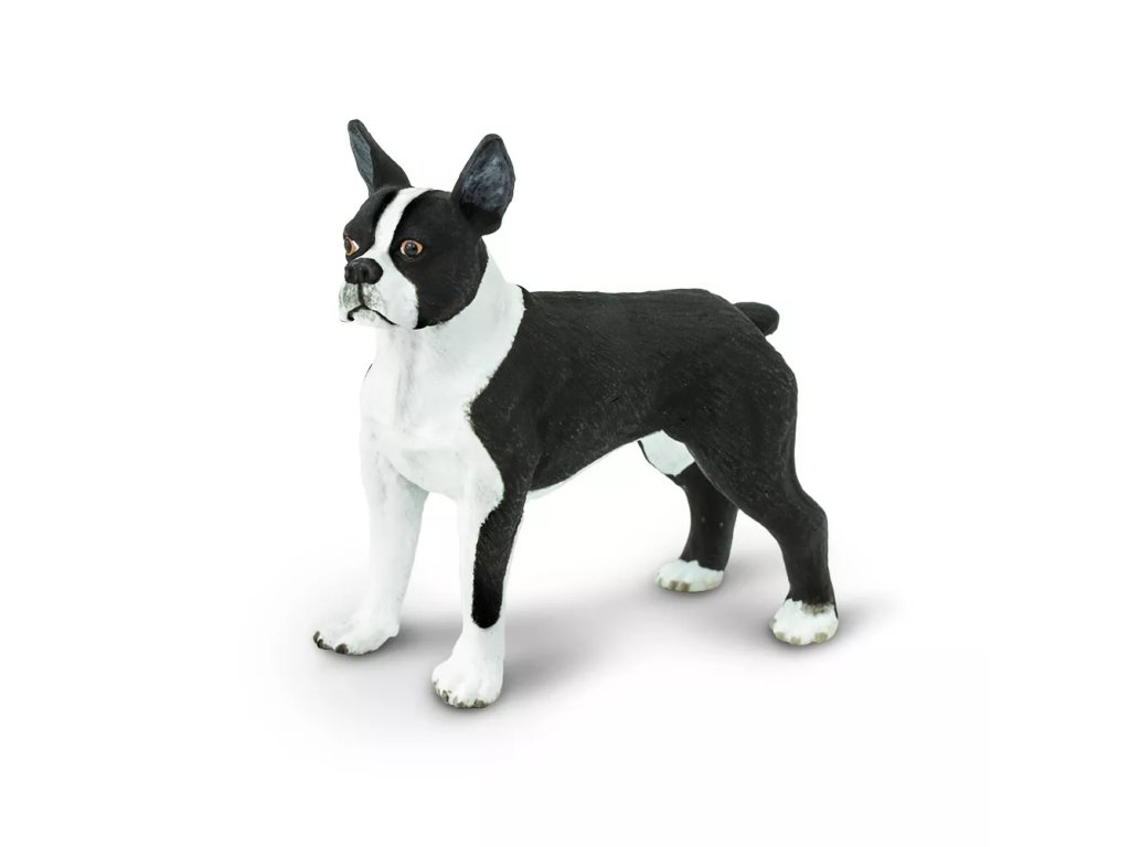 Az USA-beli Bostonból származó kutyafajta, amelyet kutyaviadalokra tenyésztettek ki. A boston terrierek kis testű, erős testfelépítésű, nagy intelligenciájú, éles eszű, barátságos és szeretetteljes kutyák. Ez a figura a fajta tipikus jegyeit mutatja be kompakt kivitelben.