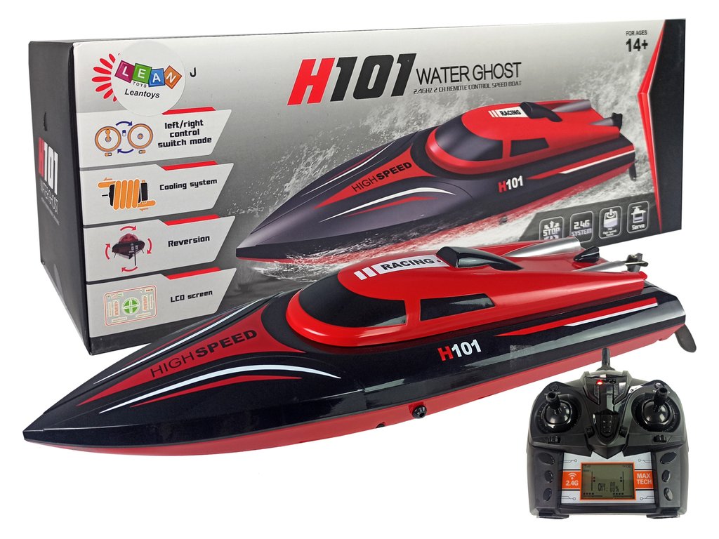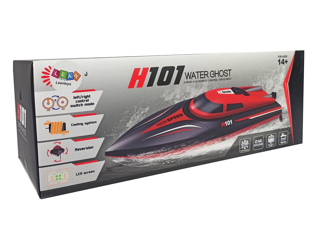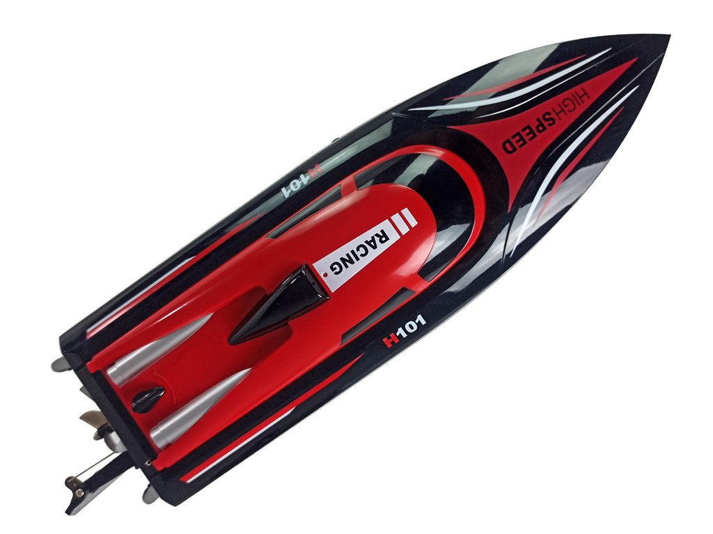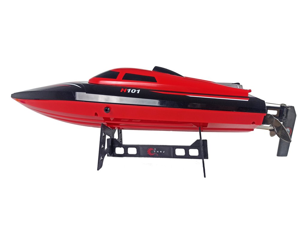 A motorcsónak speciális konstrukciója megakadályozza a víz bejutását. Vízi versenyekre tökéletes! A távirányító 2,4 GHz-es frekvencián ad, ami két jármű vezérlésekor nem okoz interferenciát. A hajó akár 35 km/h sebességet is elér.