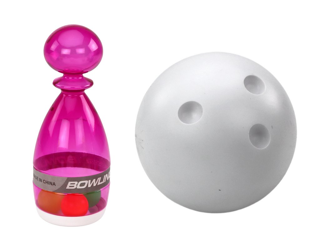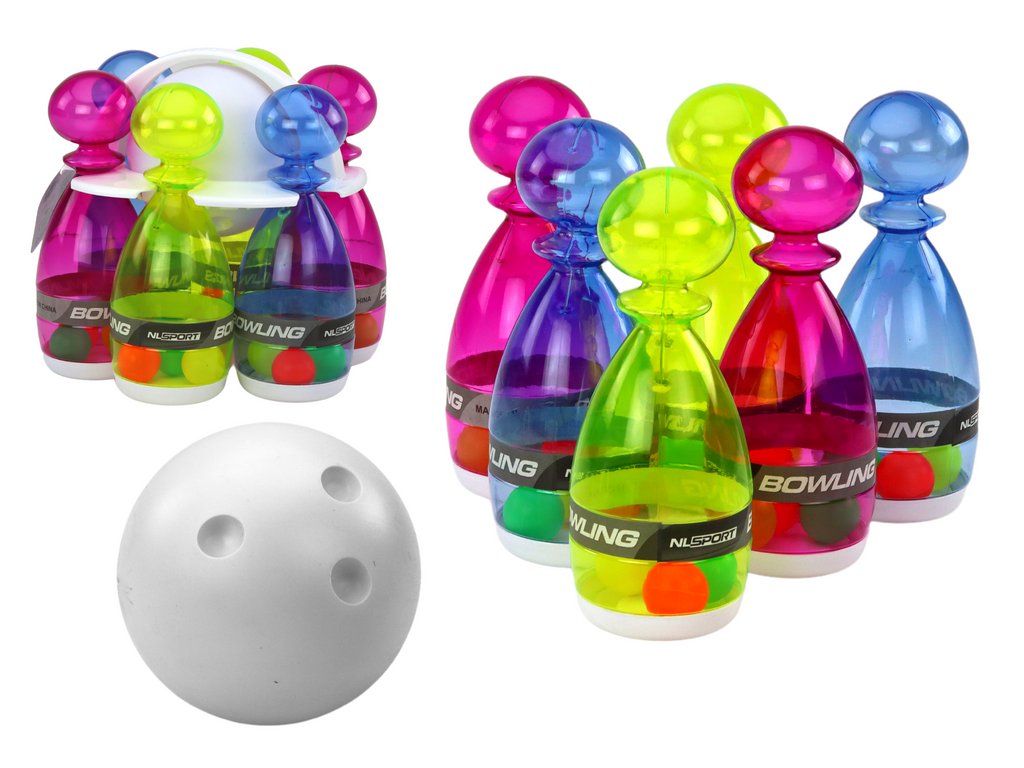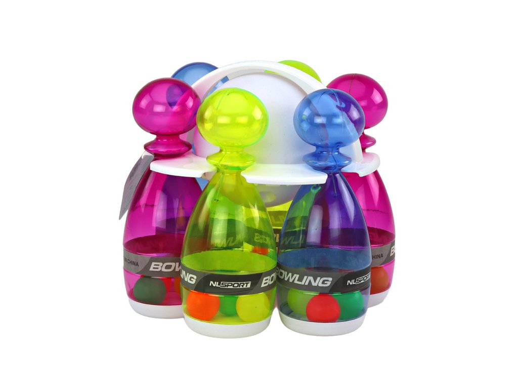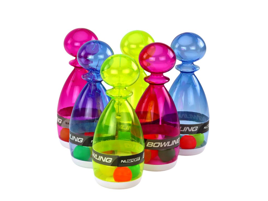 Bowling készlet 6 db átlátszó színes gombostűből