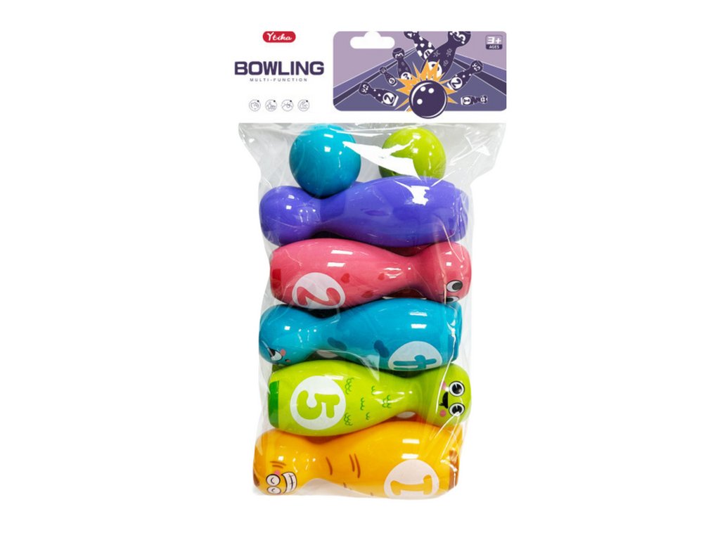 Bowling készlet színes golyók lappal 10 db